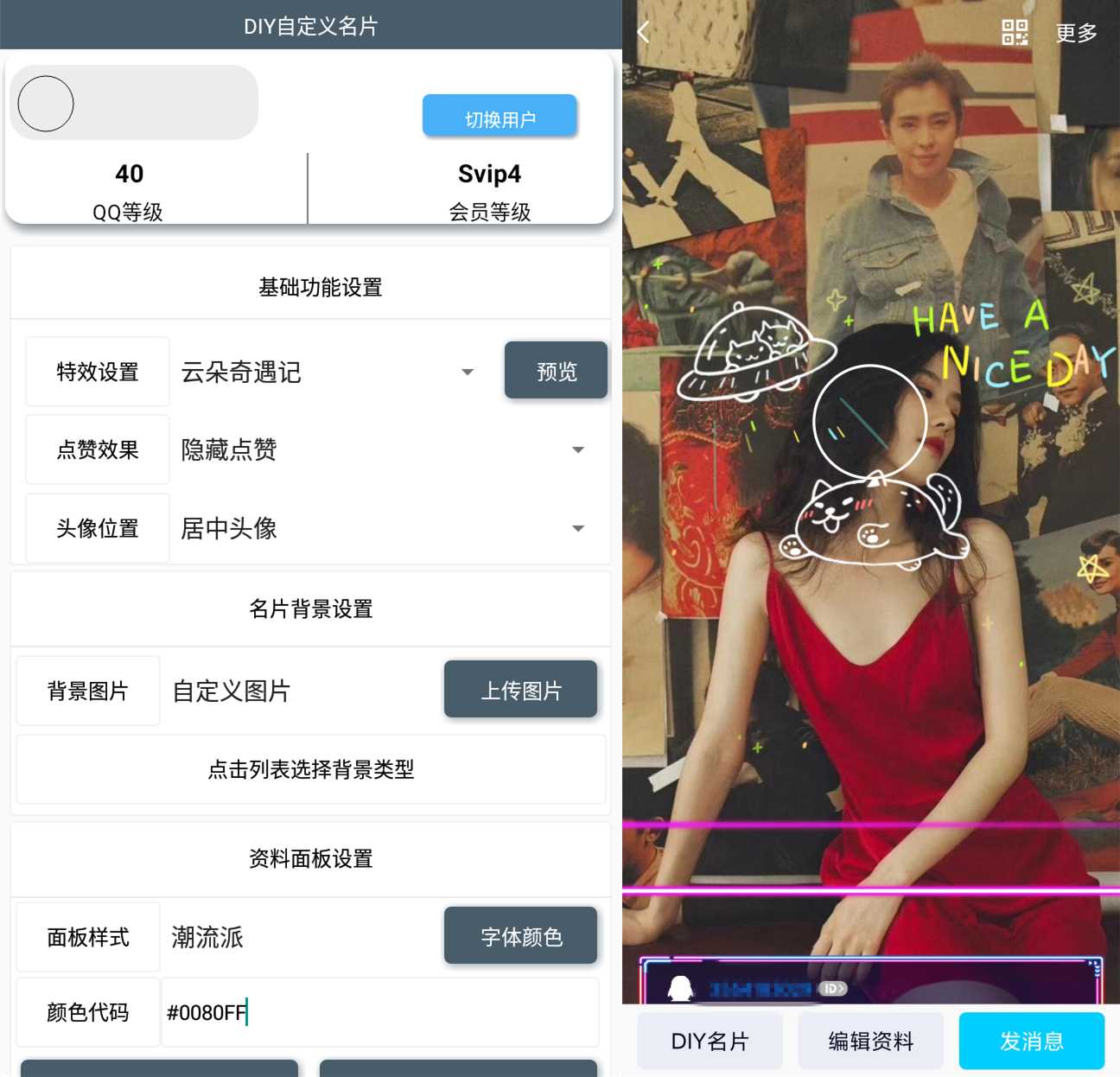 DIY自定义名片帮你制定个性DIY动态名片,让你在你的好友里独树一帜,不拘一格。