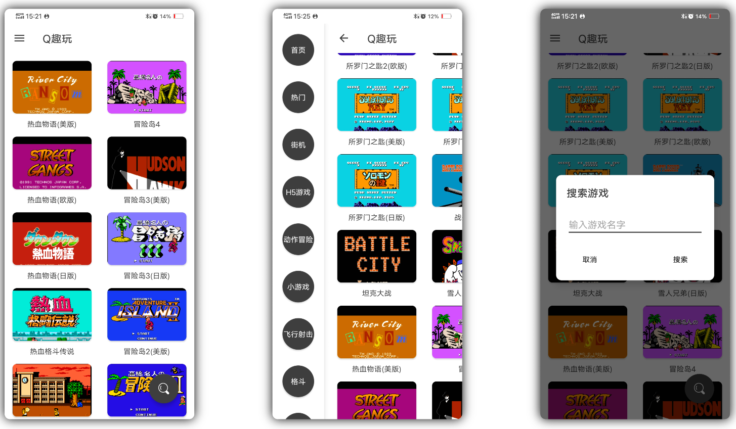 这是一款包含几百款在线小游戏,童年经典游戏机,魂斗罗,射击角色扮演等,还有各种分类等你选,独家原创,内存超小,还支持搜索哦~
