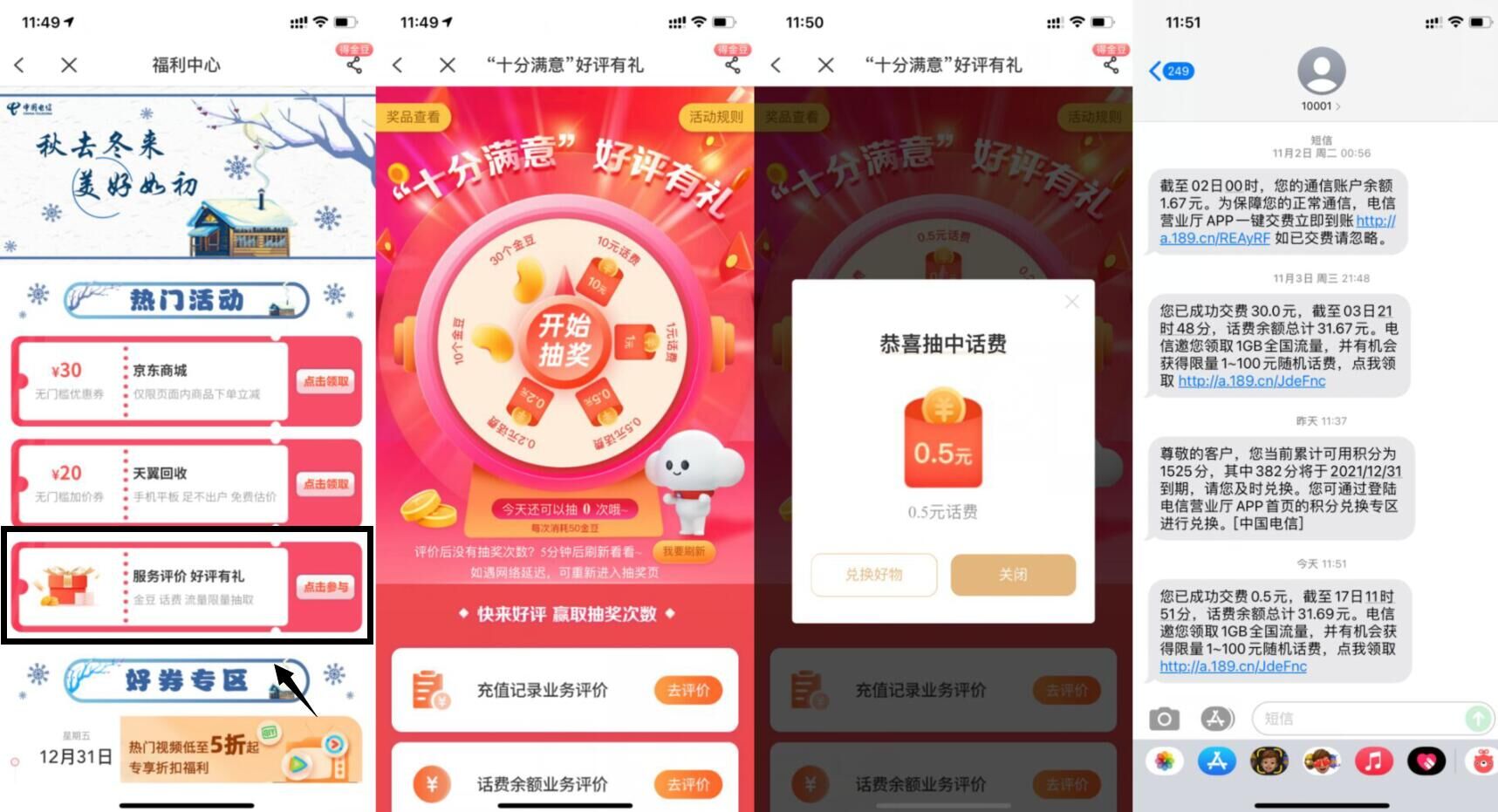 2,进入完成下面2个业务评价,在服务页底部进入评价,返回可以参与2次抽奖,抽奖次数有延迟!