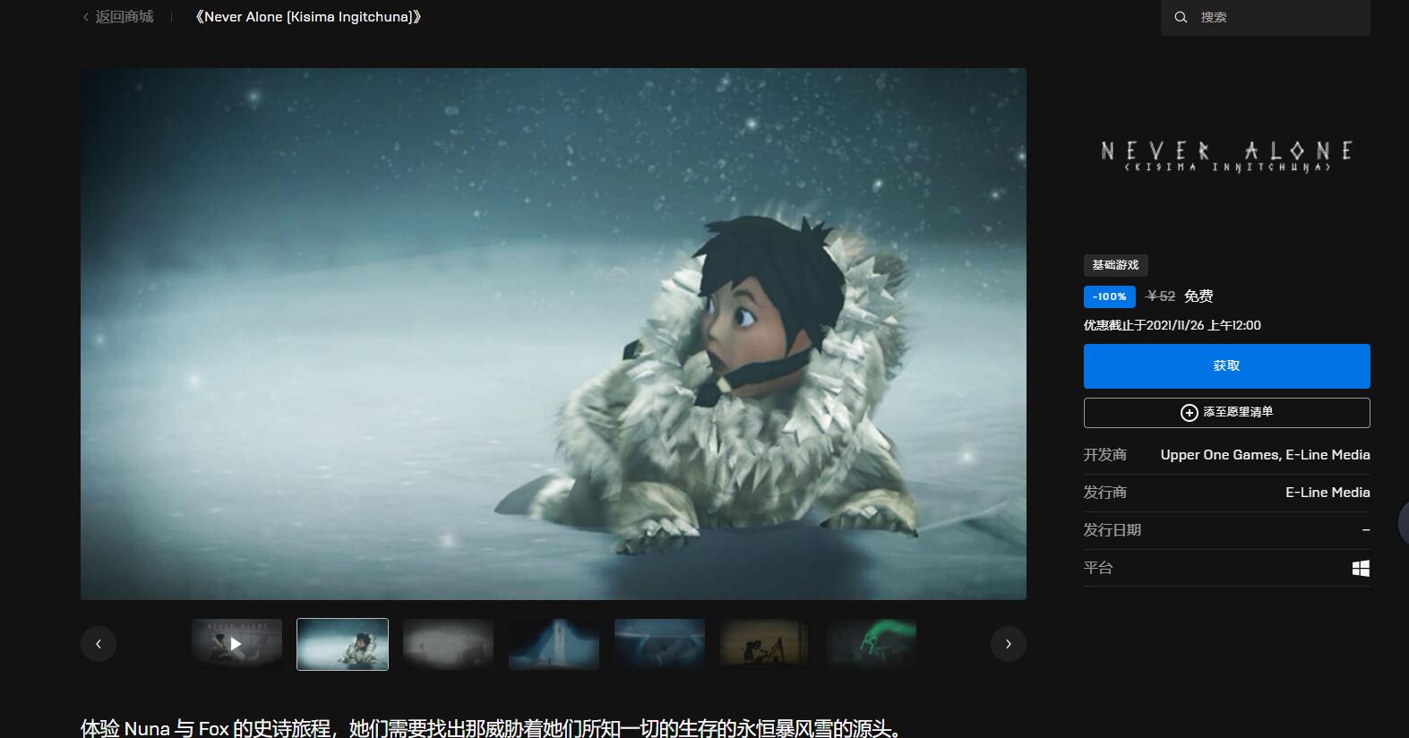 《Never Alone》:https://www.epicgames.com/store/zh-CN/p/never-alone-kisima-ingitchuna