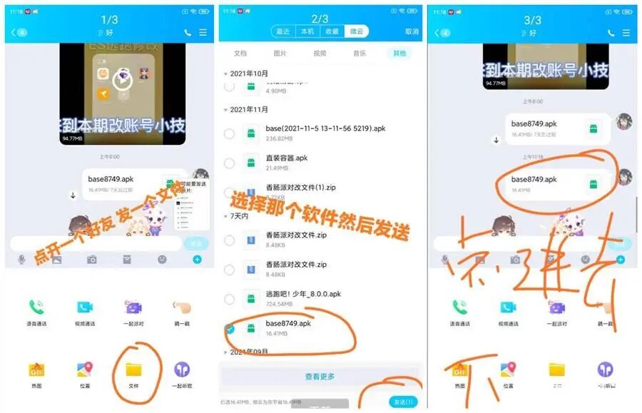 打开QQ,随便选择一个人、点开文件(就是发文件)