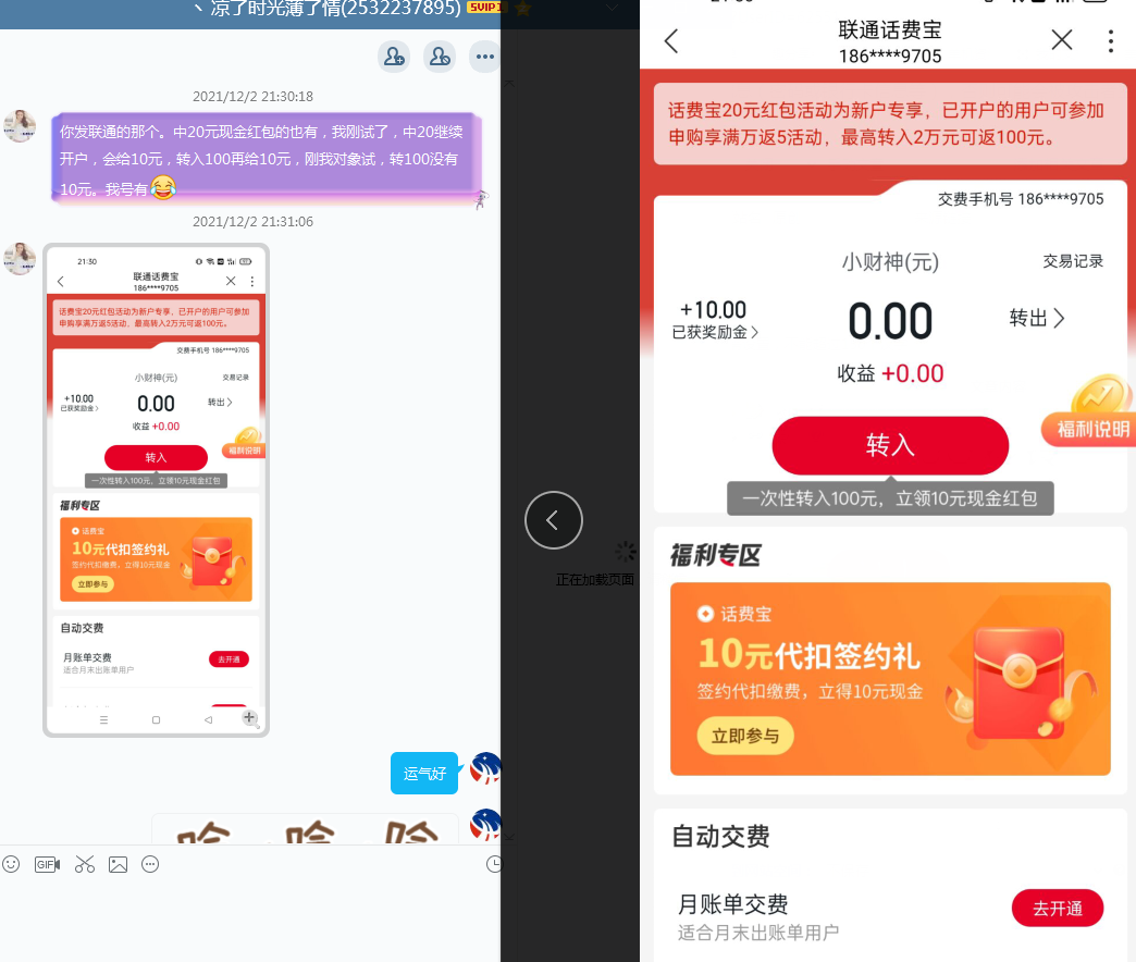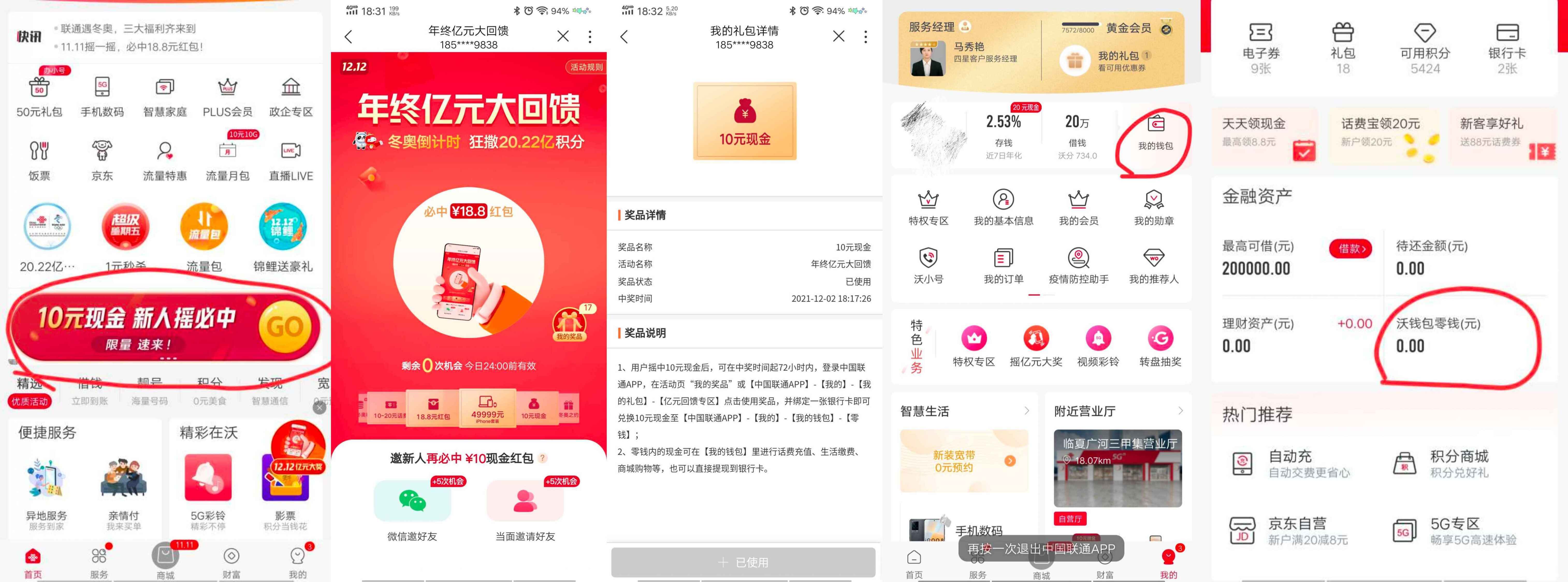 打开联通营业厅APP,首页点横幅,进去摇一摇中了根据提示提现
