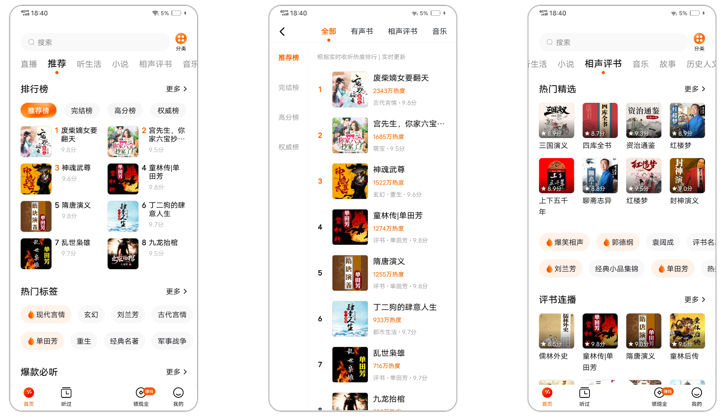 仙侠,玄幻,灵异,言情,相声,故事情感应有尽有,