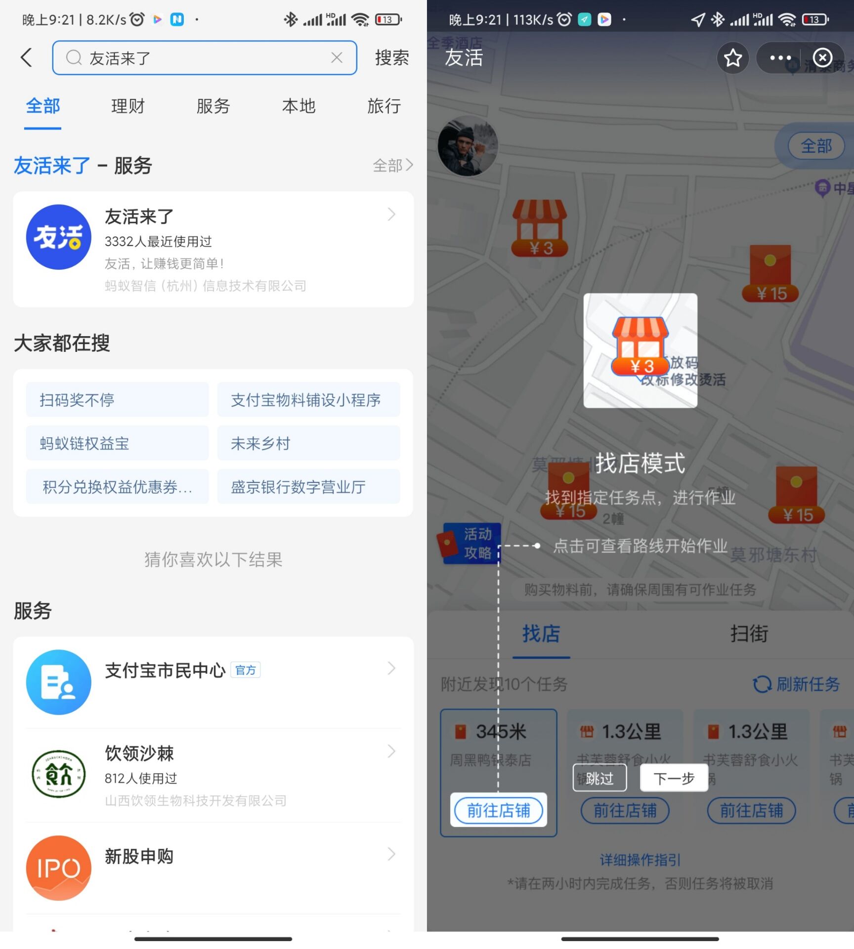 打开支付宝APP搜索“友活来了”