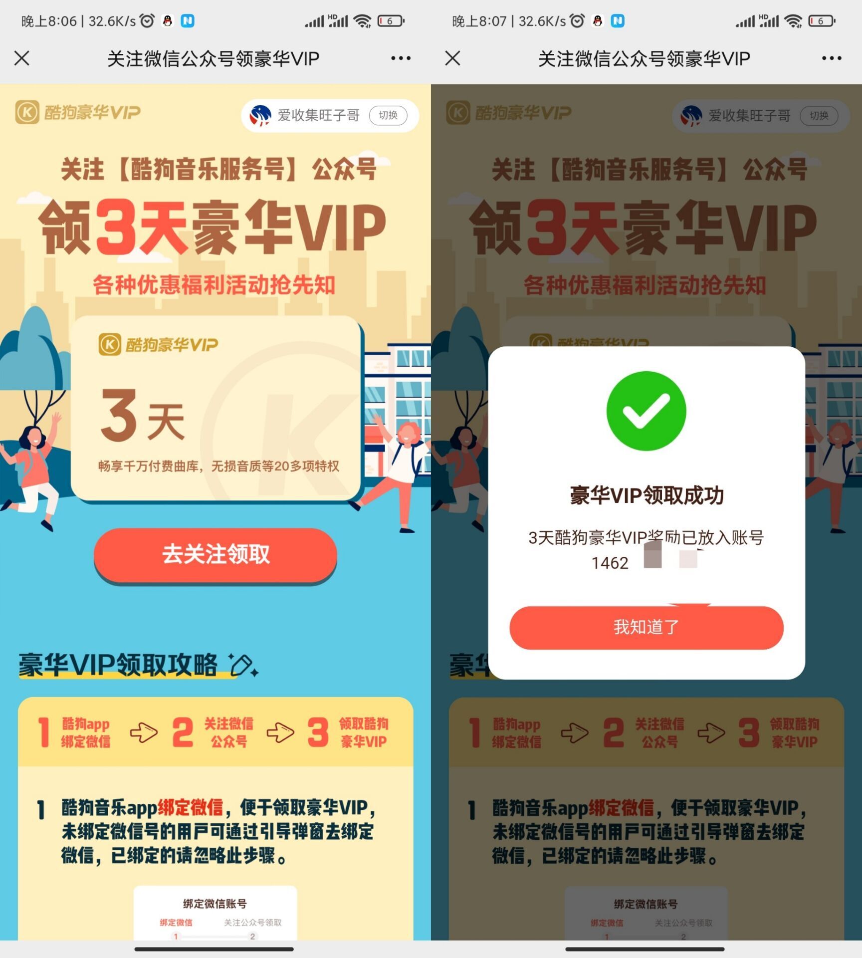 微信打开点击关注领取,临时需要听酷狗和下载歌曲上!