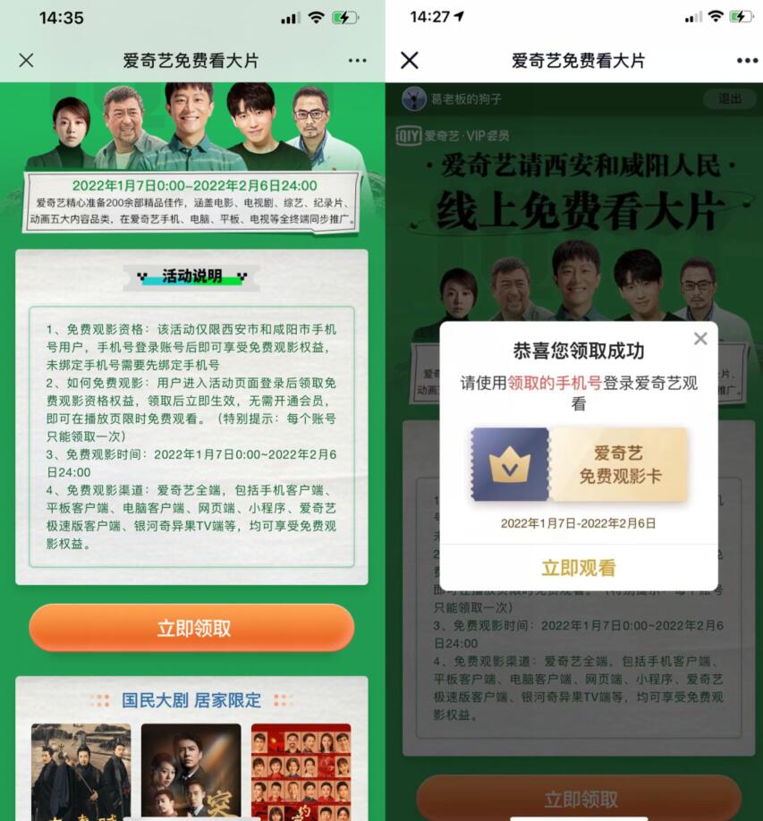 【西安和咸阳的手机号免费领1月爱奇艺会员】