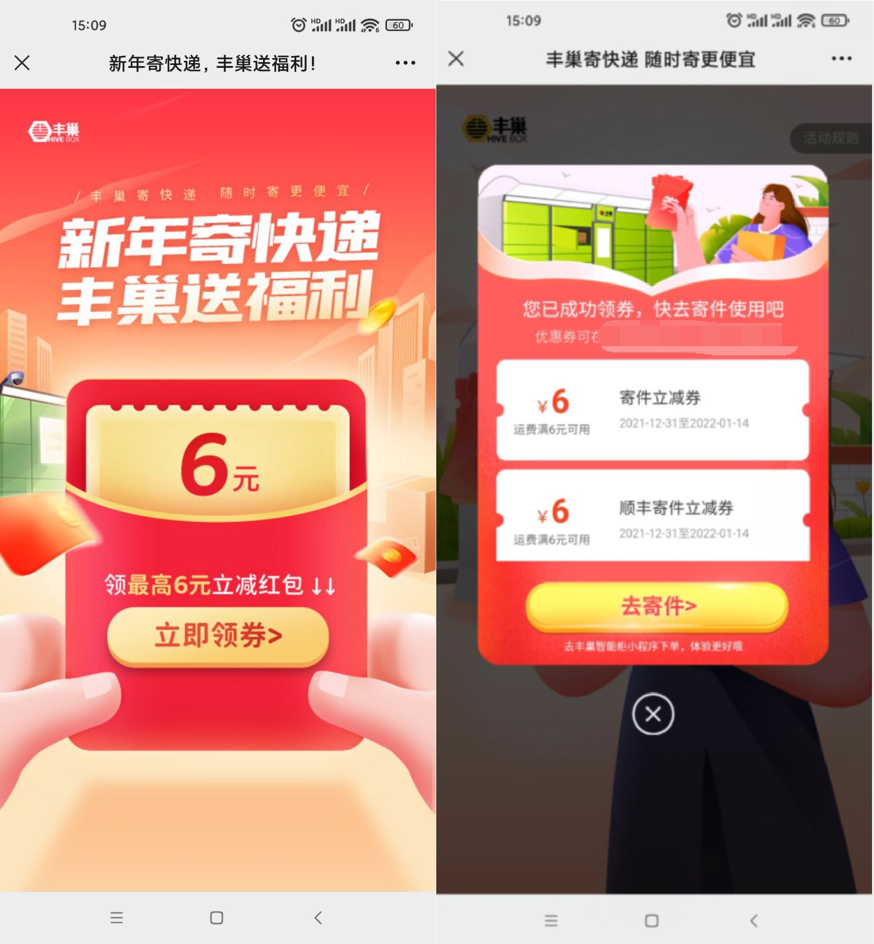 【丰巢领6元寄件券】打开地址直接领取即可
