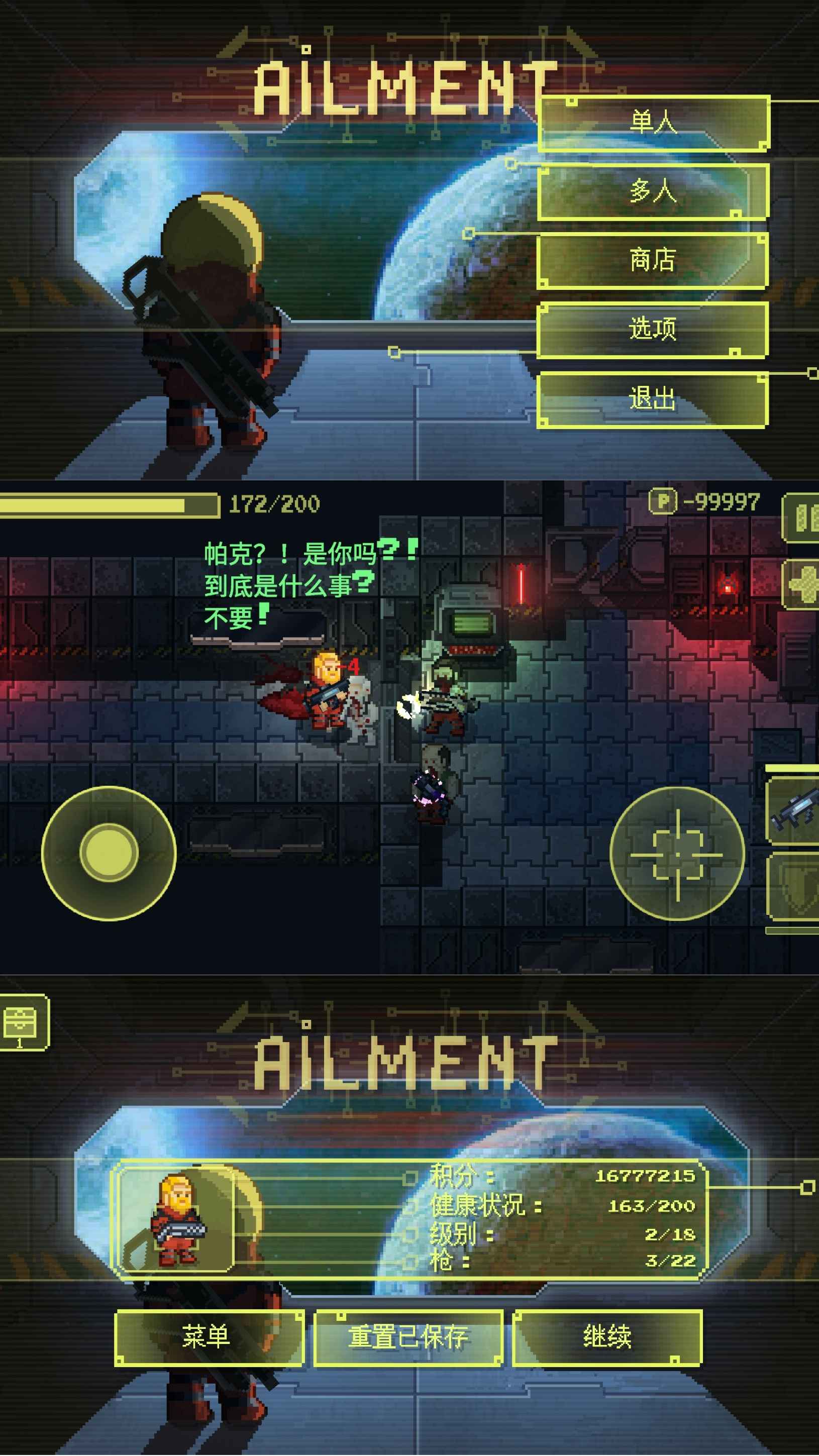 已更新v3.0.9!一个像素艺术rogue-like动作游戏发生在一艘宇宙飞船在远远远的星系。主角醒来在一艘宇宙飞船后昏迷了三天,他所有的船员成为敌人。他记得的最后一件事从其他船返回他营救任务。但是每个人都在船上已经死了……他必须记得发生了什么事,找出真相,修改了无限P点,去广告,在选项里可以设置为中文!