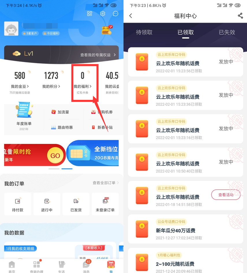 【电信领取4~100元话费】补充新口令!打开电信APP->我的福利->输入口令“金虎闹春666”、“虎运连年999”、“灵虎送福888”、“虎虎生威666”->提示补货一直狂点继续点->然后手动兑换->再领取下不秒到!