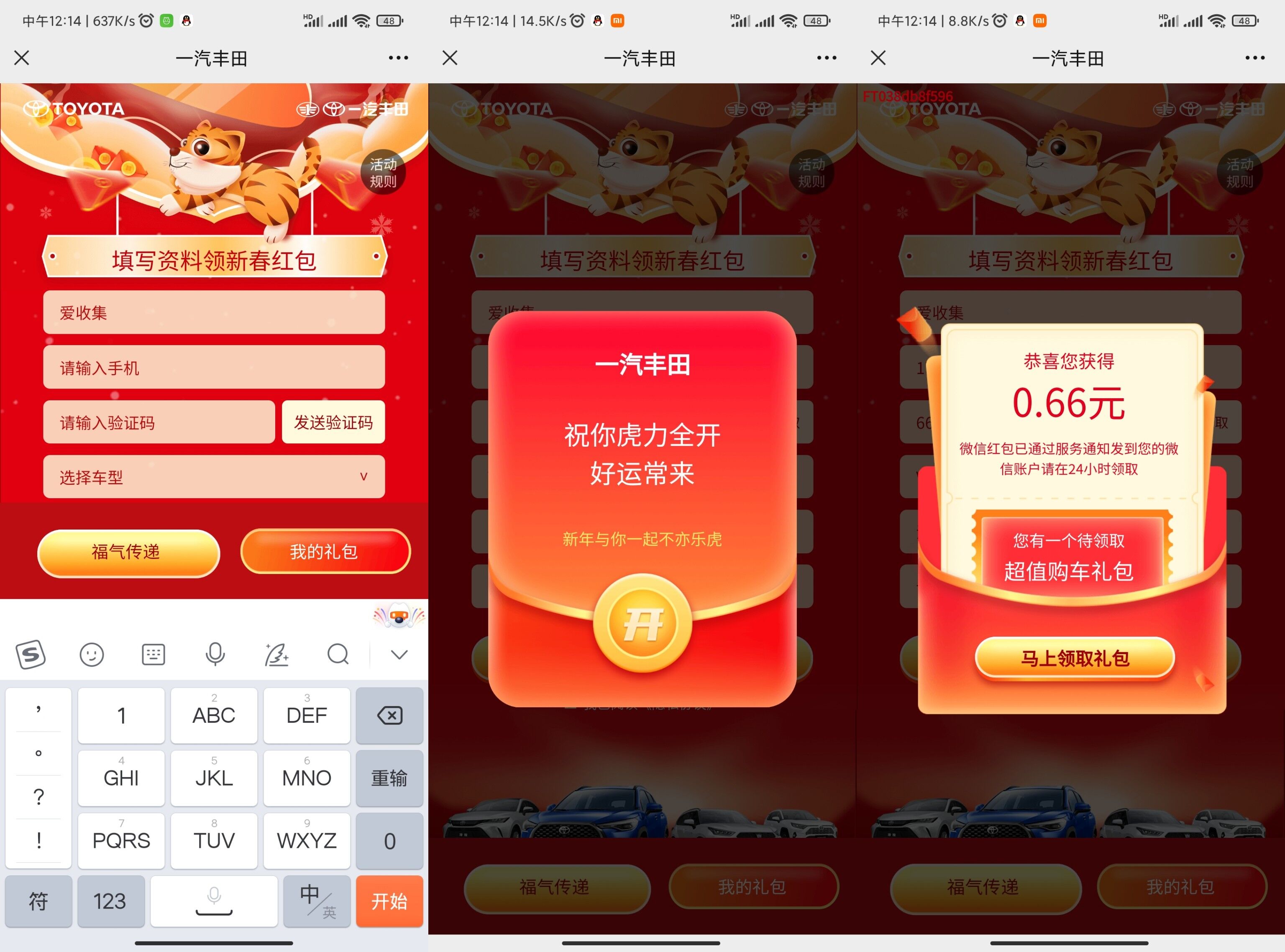 点击开->信息随便输入->手机号要真实的,抽0.22~6.66元红包!