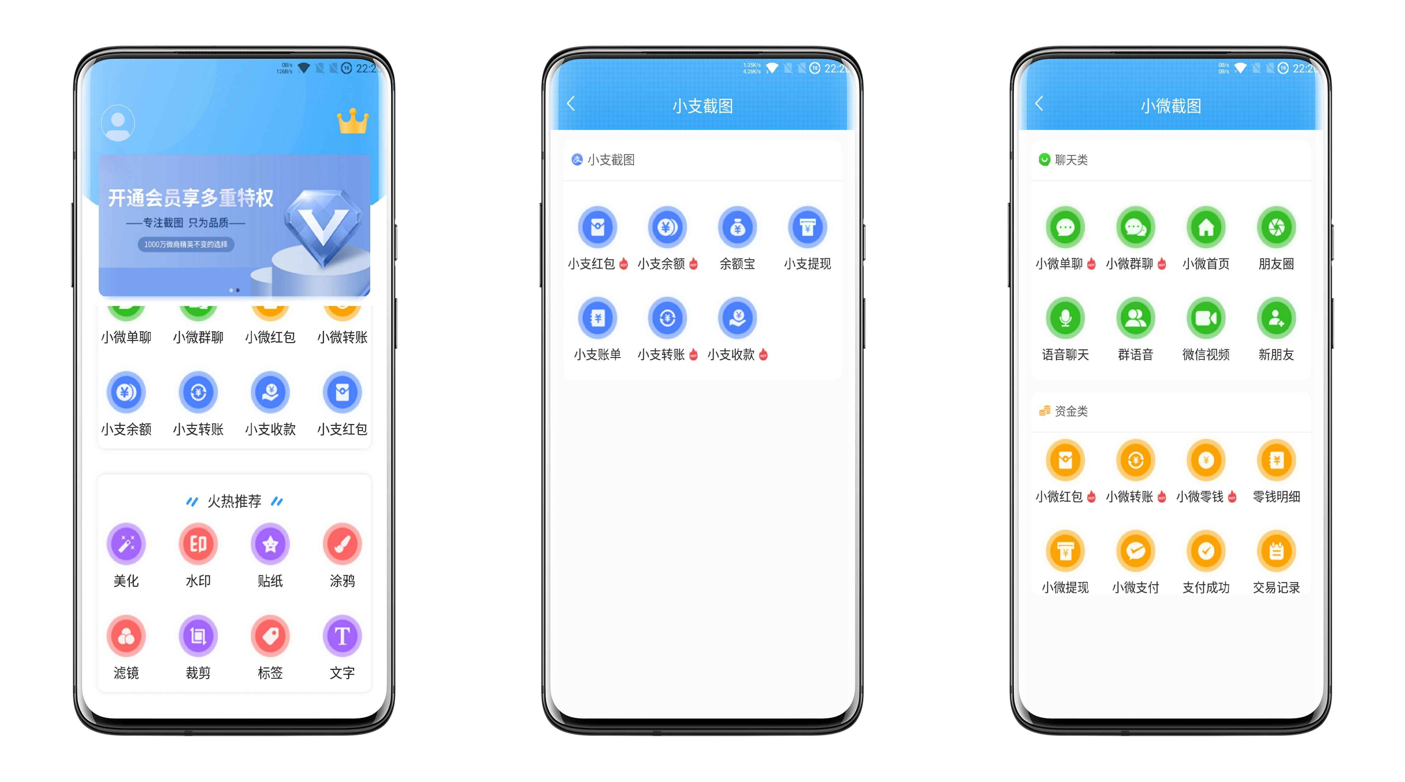 微商截图可以制作wx、Q*Q、支*付*宝相关截图图片、操作简单、非常实用!而且优化完全可以自定义内容,做到以假乱真的效果,装逼必备赶紧下载看看吧。无需登陆,VIP功能随便用
