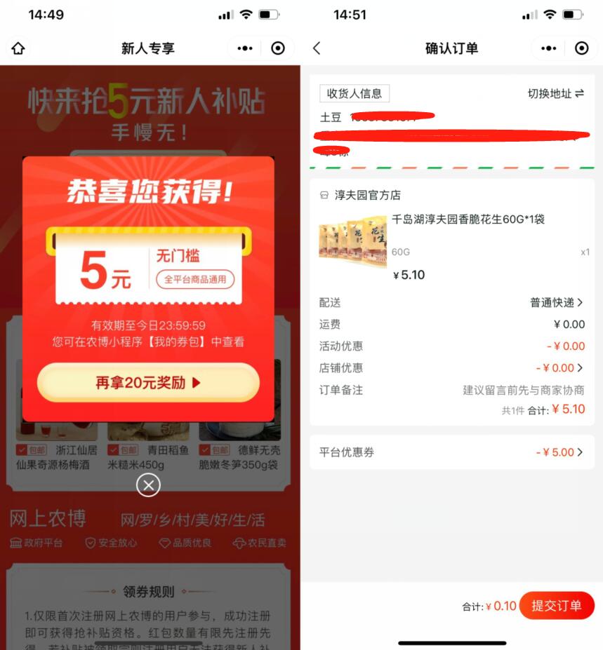2,打开下单地址->填写收货地址->下单自动抵扣