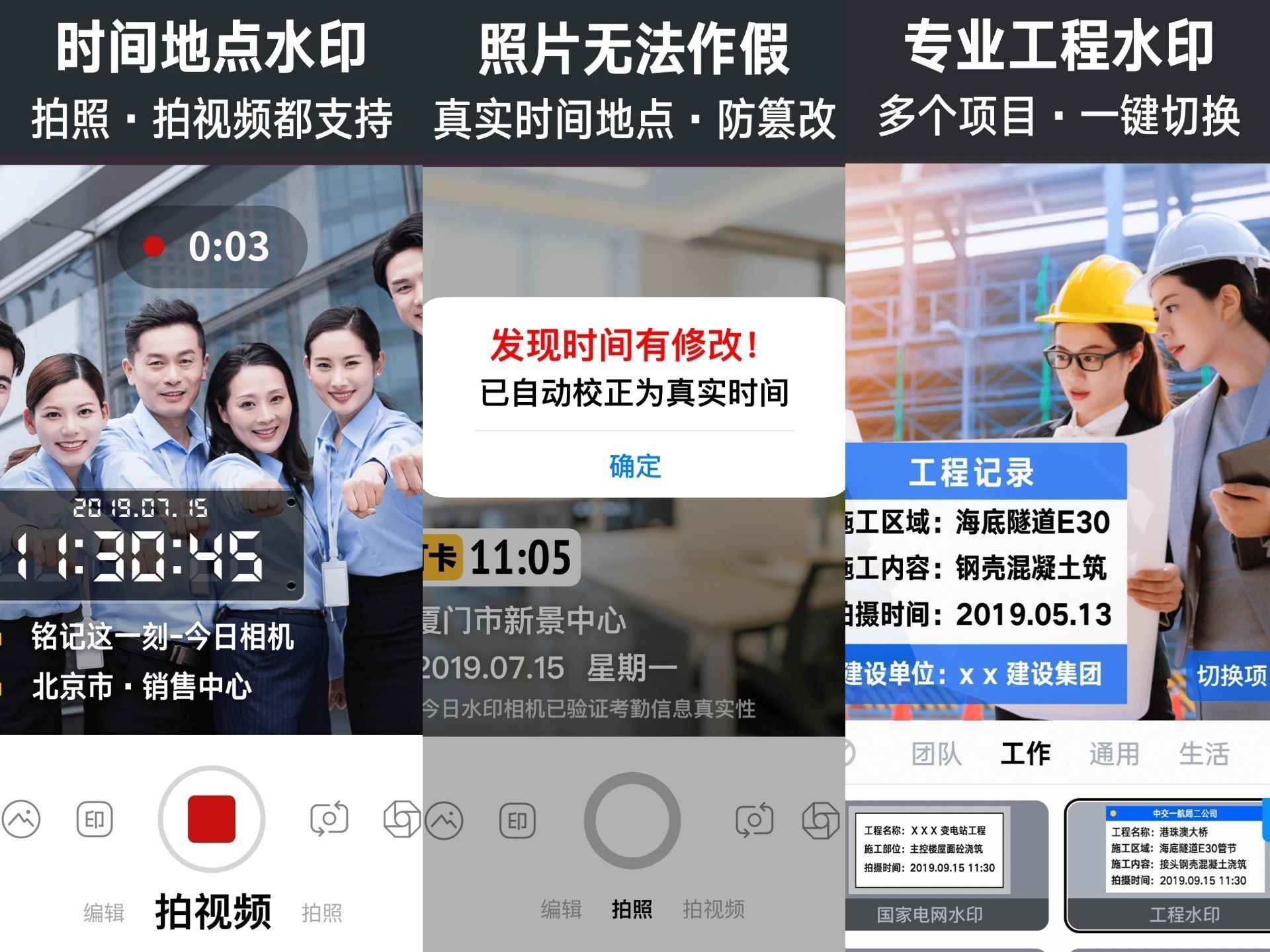 一款真实记录“工作”和“生活”的水印拍照,拥有专业的水印模板,适用于:工作拍照留痕、团队考勤打卡、工程施工管理、外勤拍照、综合执法执勤、取证拍照、旅行拍照、宝宝成长记录、记录美好生活等场景!