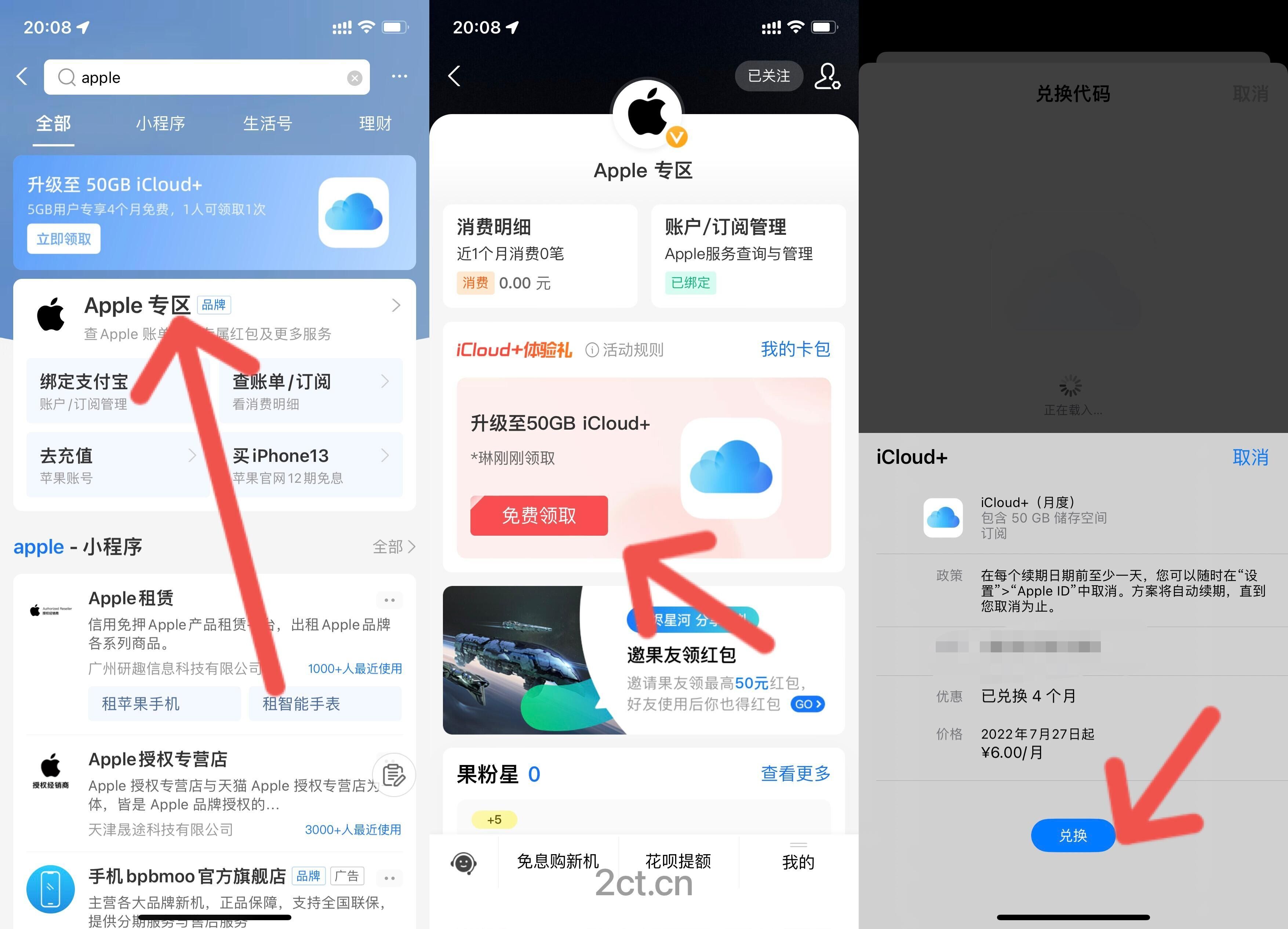 【支付宝免费领取4个月iCloud+】支付宝搜索“Apple 专区”->横幅进去领取兑换->免费领4个月50GB的iCloud 到期自动续费6r/月 记得提前取消。