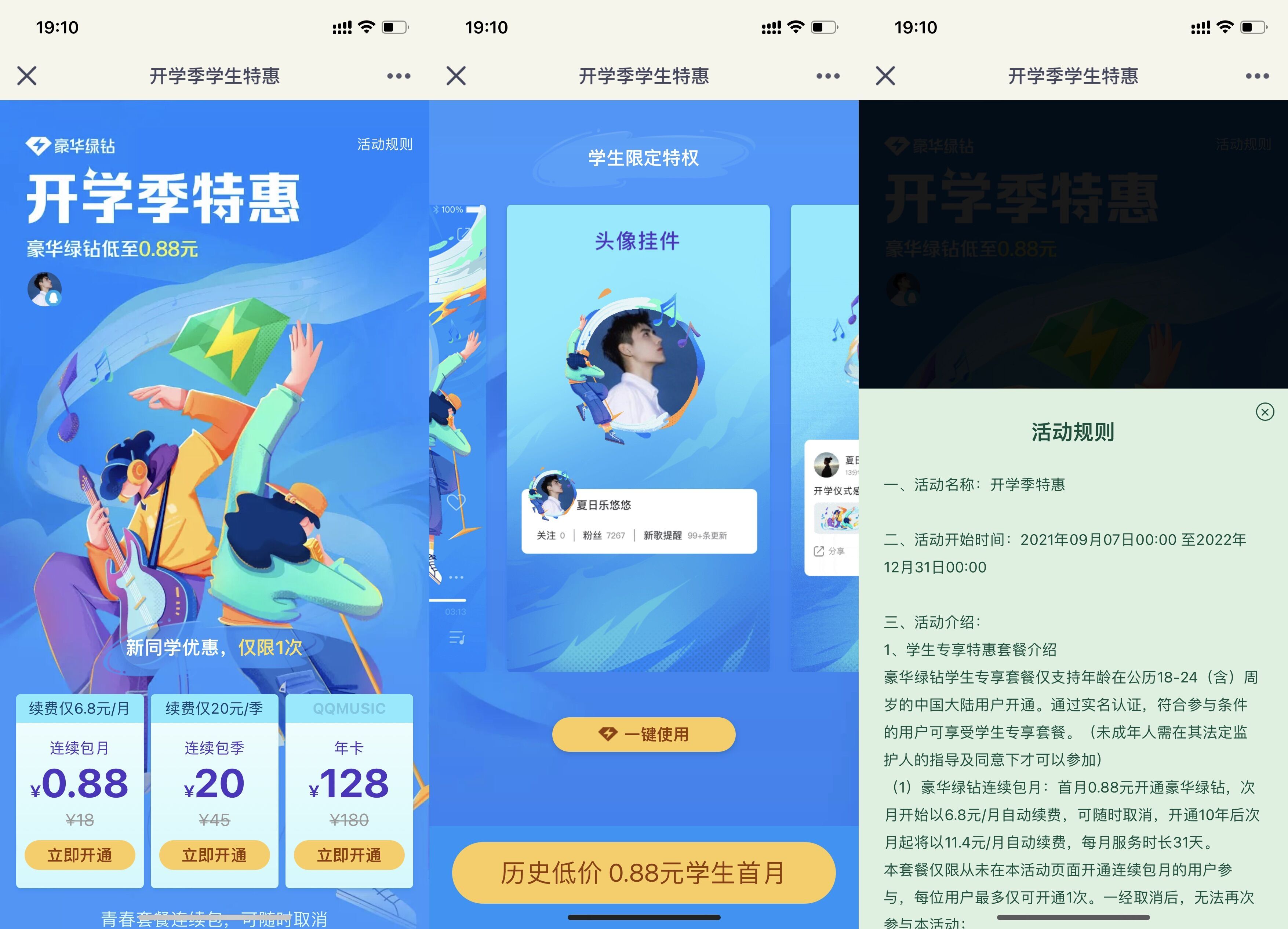 【QQ音乐0.88元开豪华绿钻会员月卡】