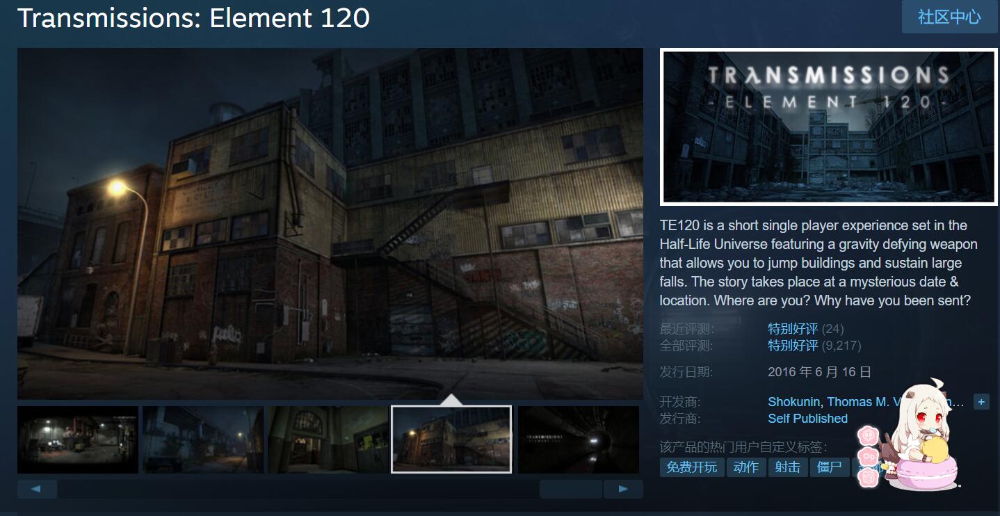 『Steam免费游戏推荐:Element 120』一款由玩家自制的半条命2高质量独立MOD,游戏内包含中文!流程大概1-2个小时,总共只有4章。讲述的剧情是发生在HL2EP2之后的事情。