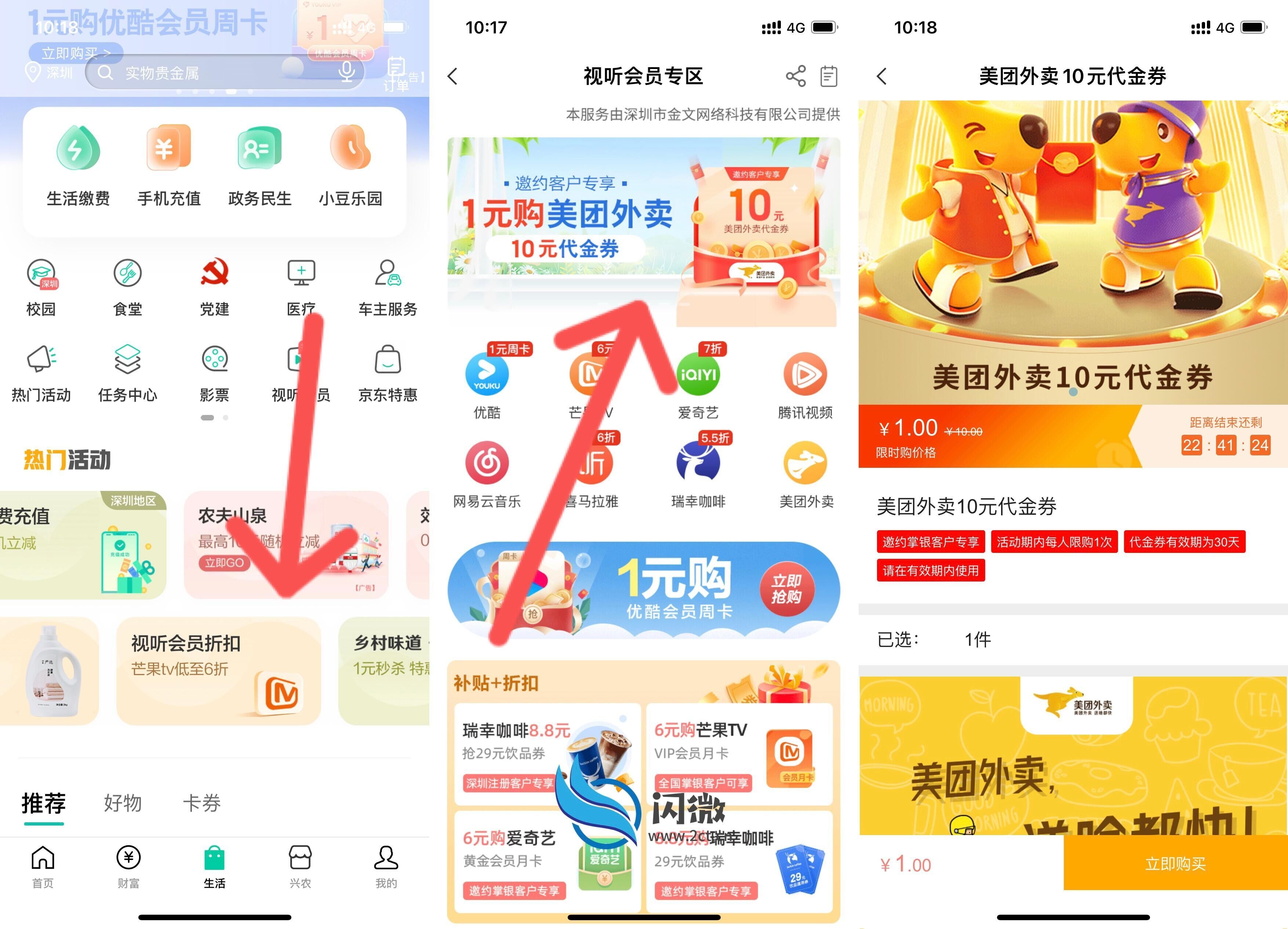 【农行受邀1元买10元美团外卖代金券】打开农行APP->生活->视听会员->横幅滑动进入,有资格就可以买 无资格无视。
