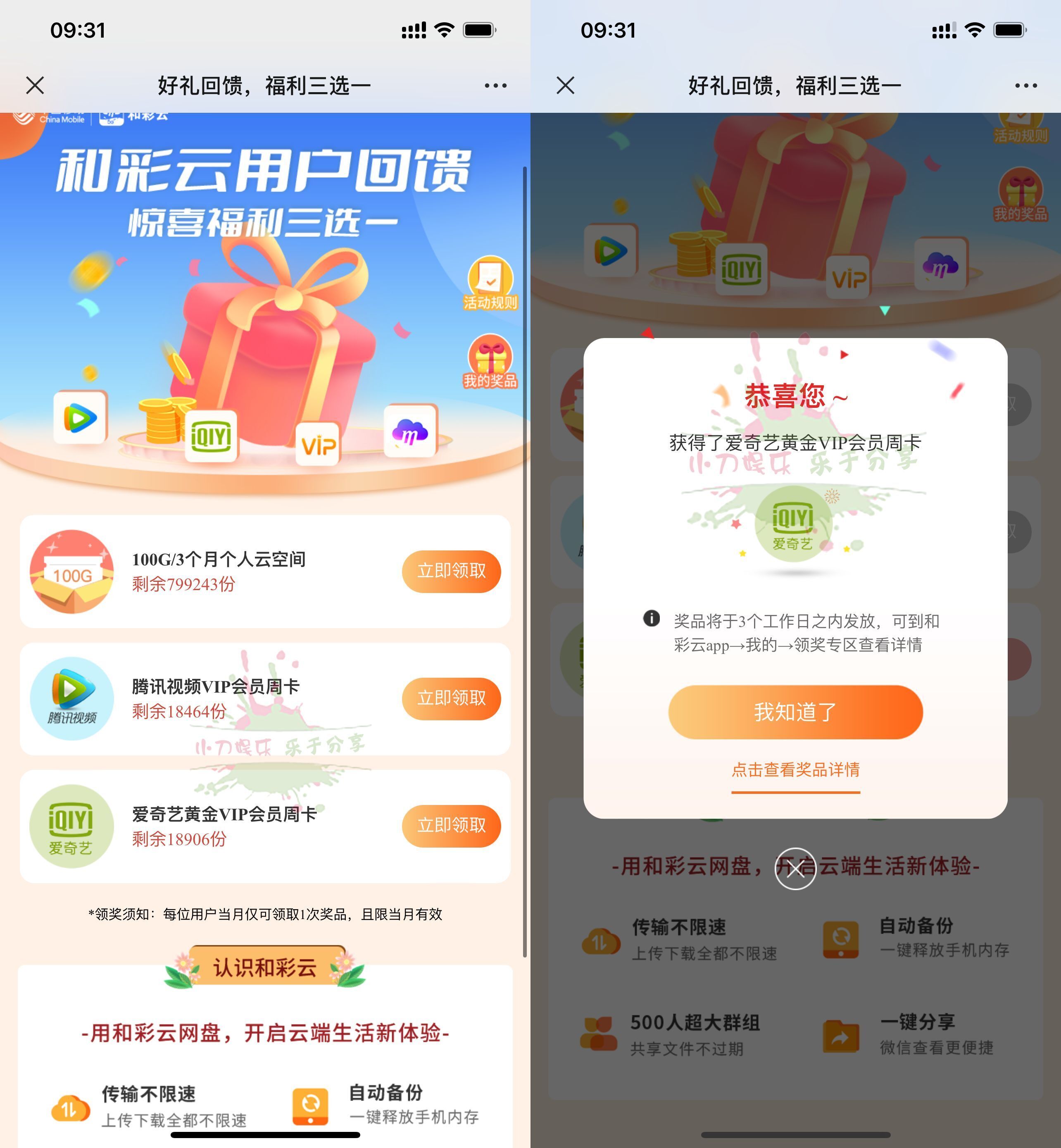 登陆账号->爱奇艺和腾讯视频2选1->直接领取直充到账