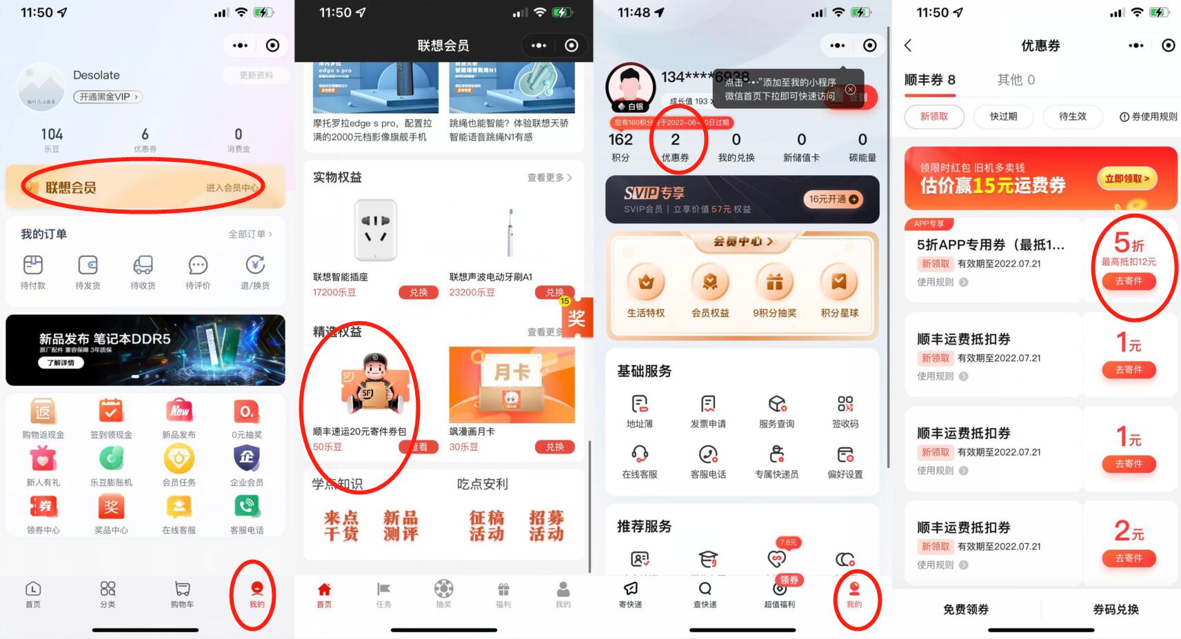 微信小程序:联想商城-我的-联想会员-福利;