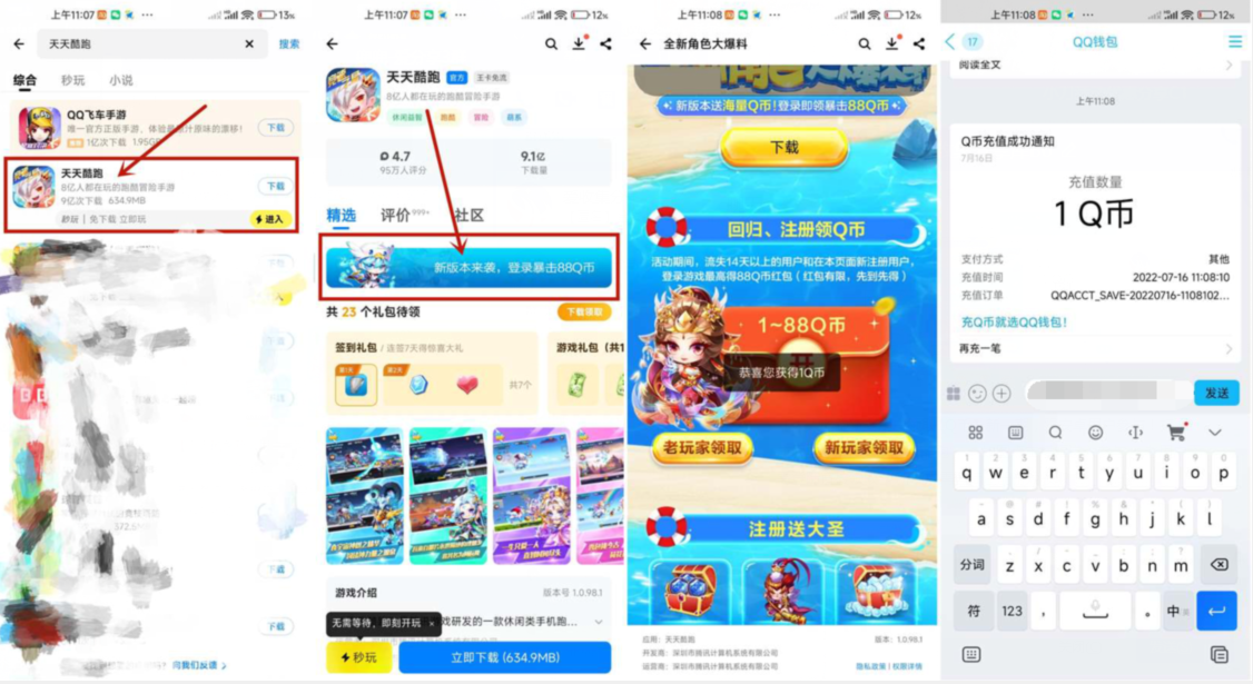 1、打开应用宝APP搜索“天天酷跑”->如图点击横幅进入参与