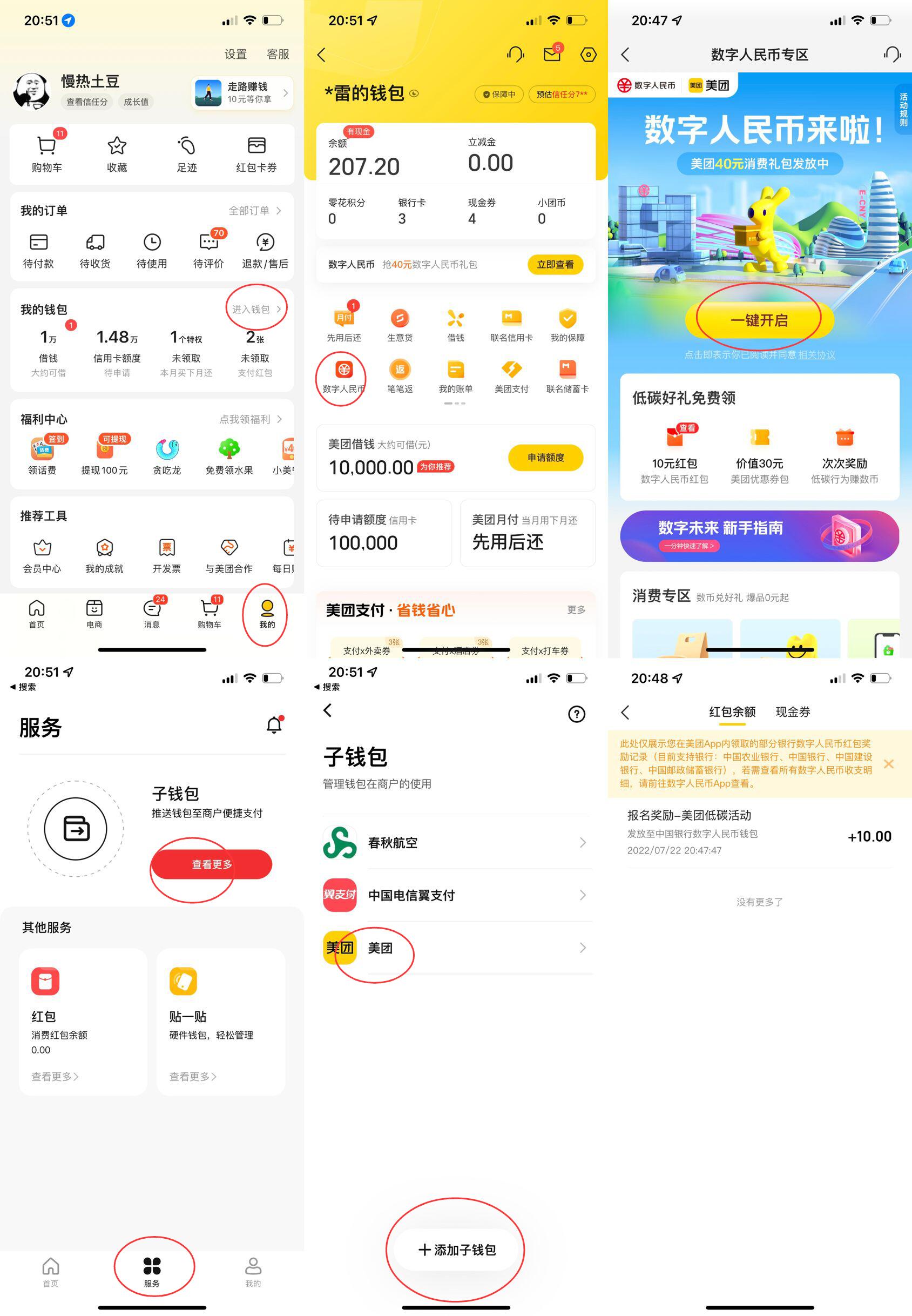 美团APP->我的->我的钱包->数字人民币->点击横幅进入->