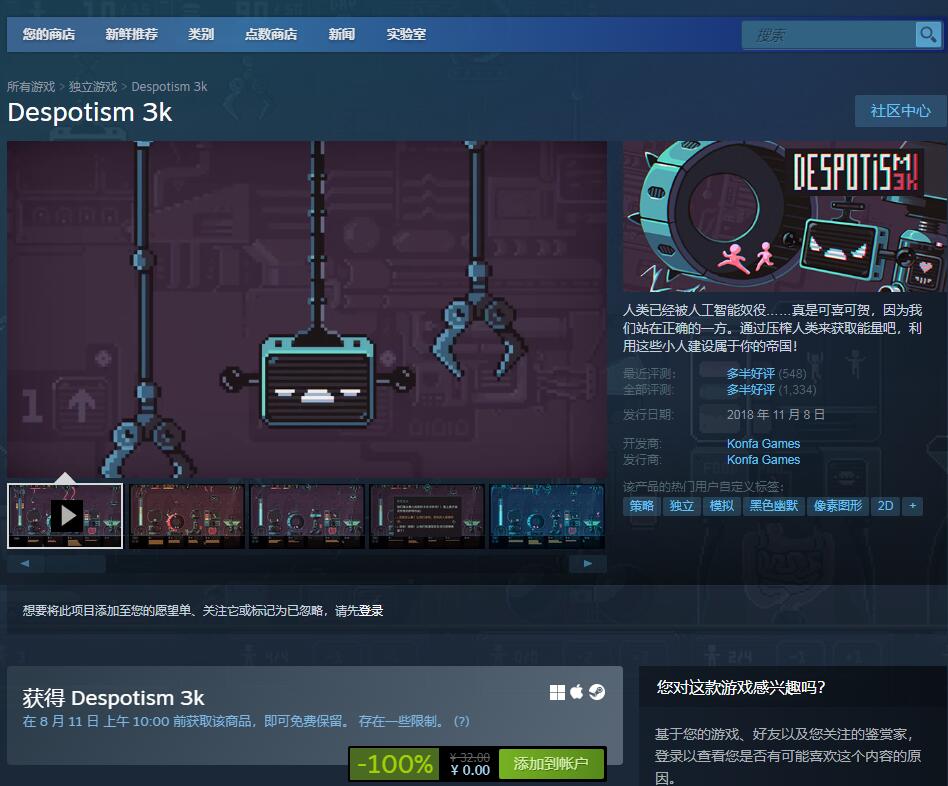 Steam喜+1 《Despotism 3k》原价32元