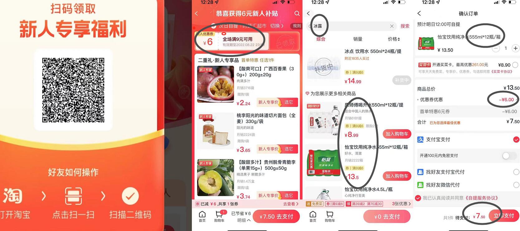 淘宝app扫码,进去新人有弹窗6元券,