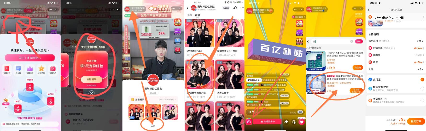1,淘宝app搜“淘宝直播”,进去后搜“聚划算百亿补贴”