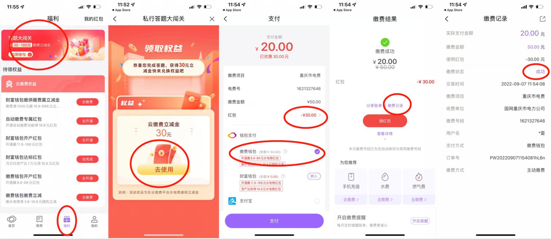 1,打开云缴费APP->我的->财富钱包转入1元(没开通过的需要先开通)