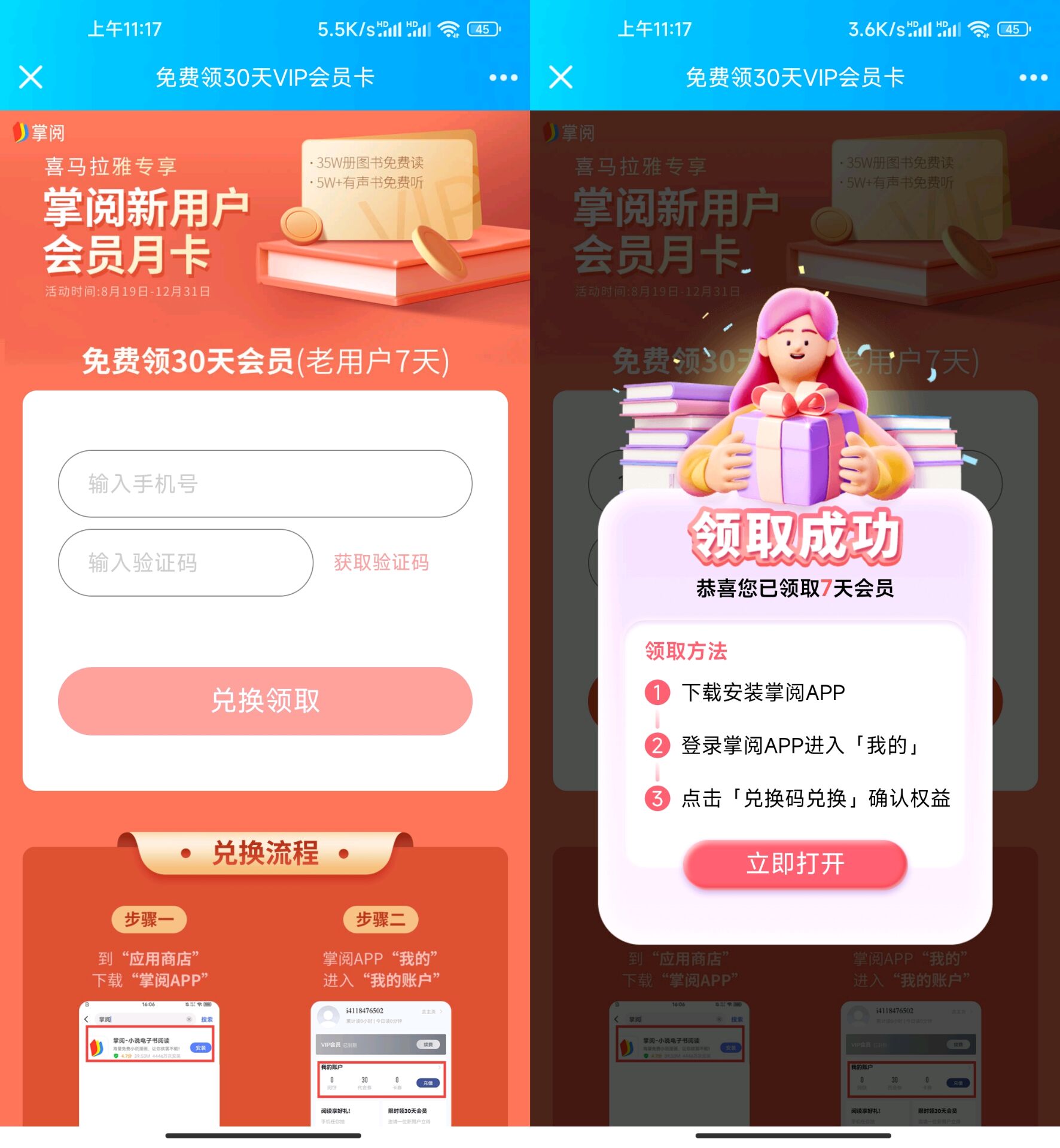 【免费领掌阅30天VIP】老用户7天!