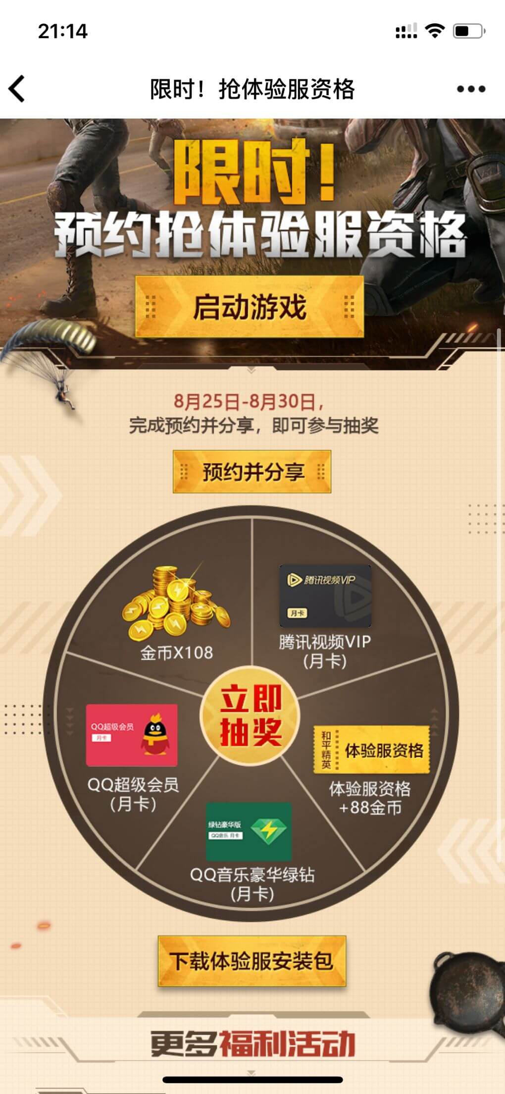 预约和平精英体验服 分享还可抽会员、绿钻等