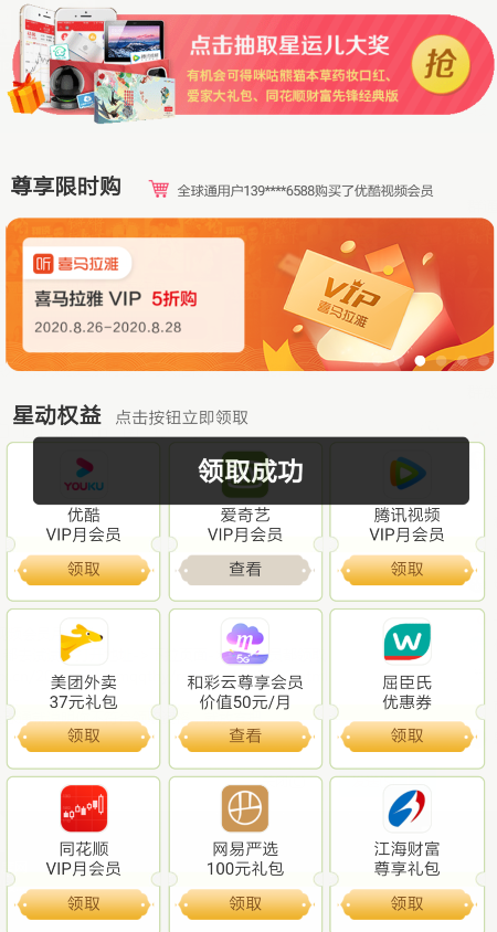 不是所有移动都行,都去试试!打开地址->下拉页面->每个会员都领取
