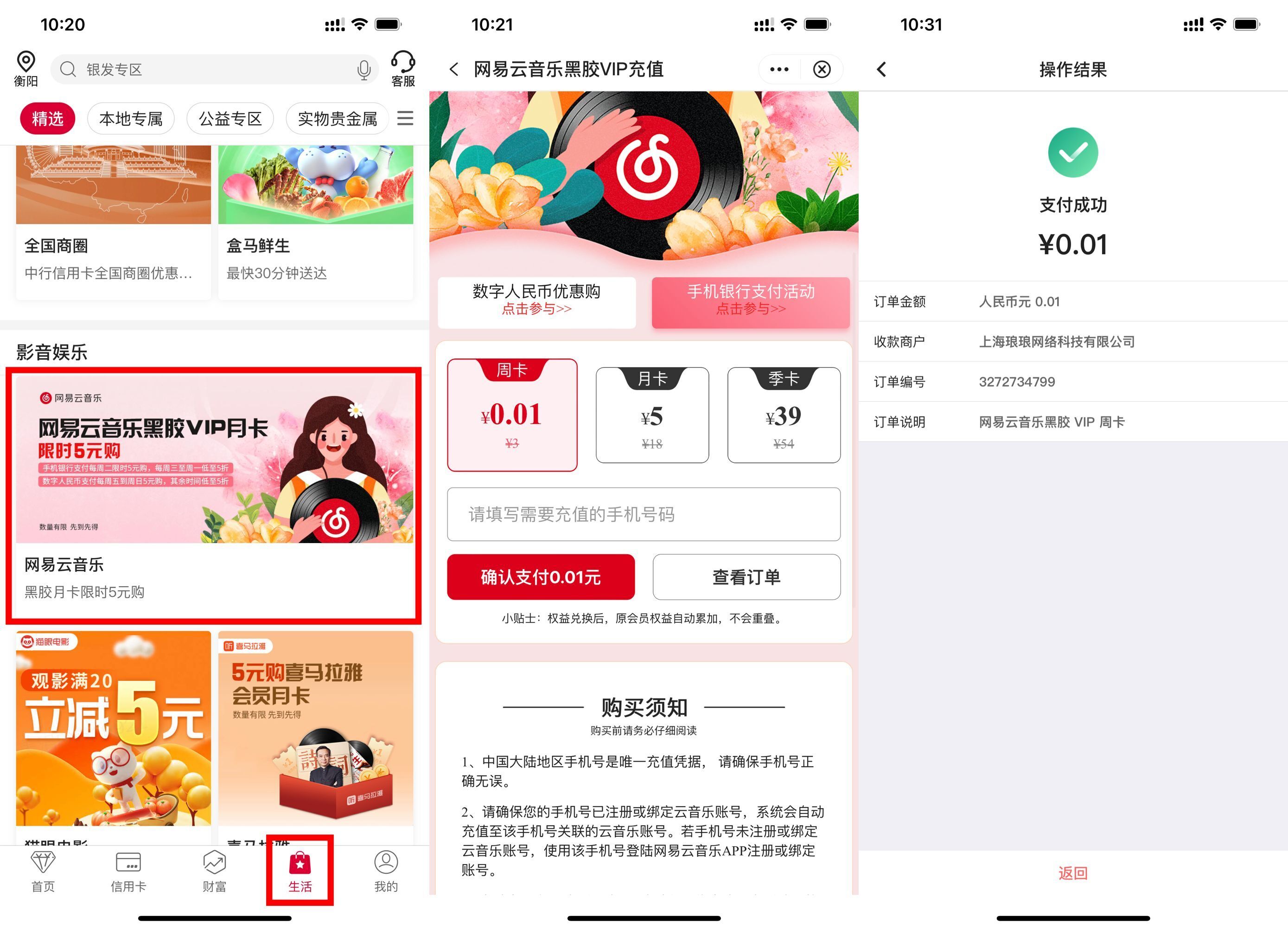 下拉找到“网易云音乐”->填写账号0.01开即可!