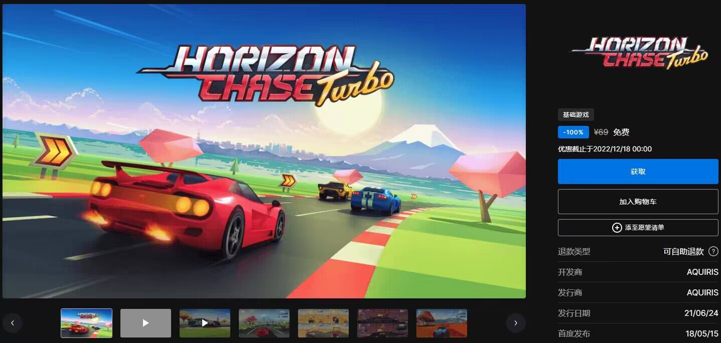 【Epic喜 1】接下来连送15天,每天一款游戏!免\u202A费领\u202A取电脑游\u202A戏《追逐地平线Turbo》,一款赛车游戏,领\u202A取时间截止到12月17日23点。https://store.epicgames.com/zh-CN/p/horizon-chase-turbo