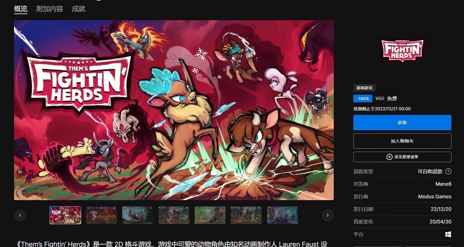Epic喜加一:今日《Thems Fightin Herds》限时领取,优惠截止于2022/12/21: