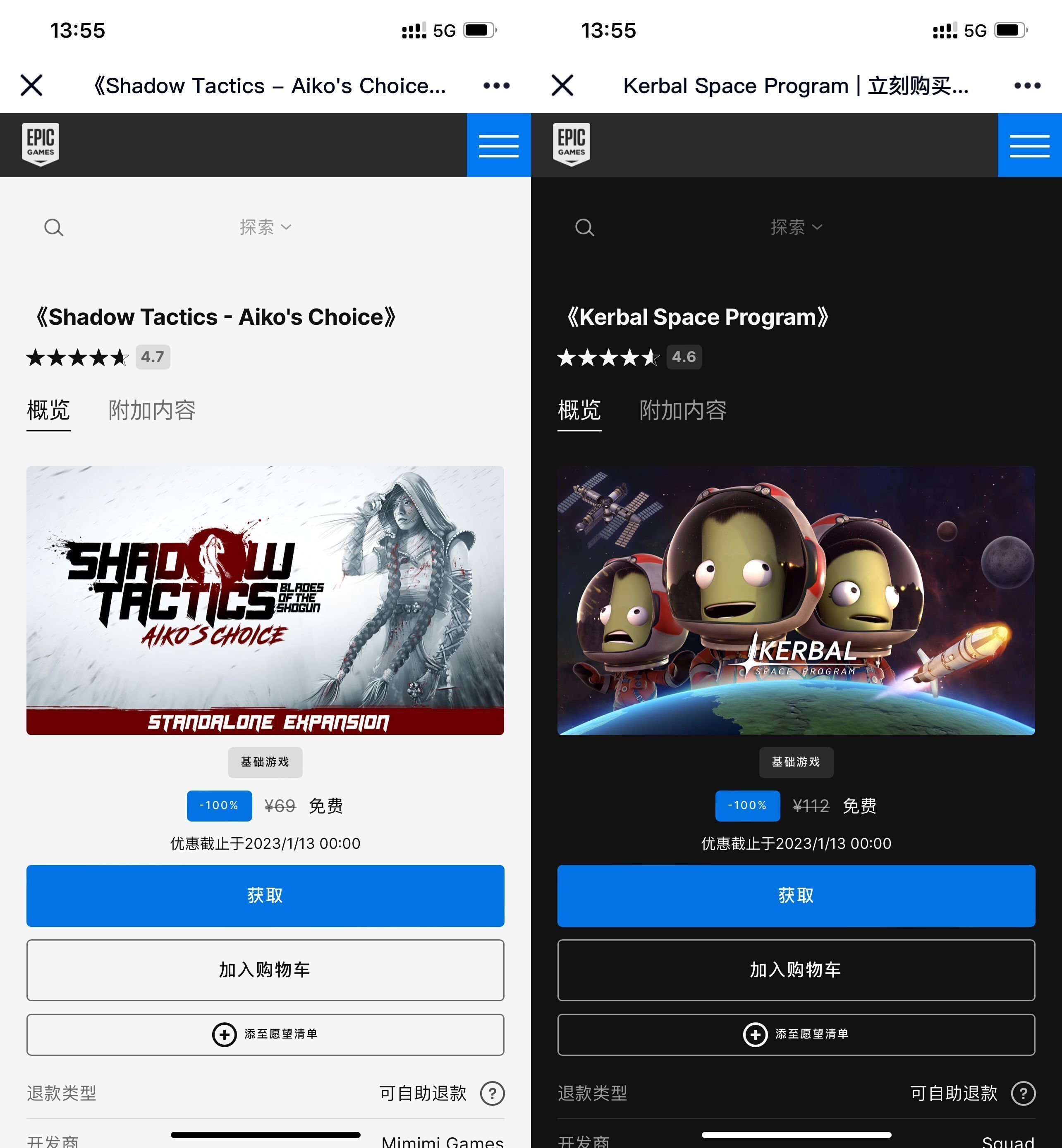 【Epic喜 2】领取时间截止到2023年1月13日0点