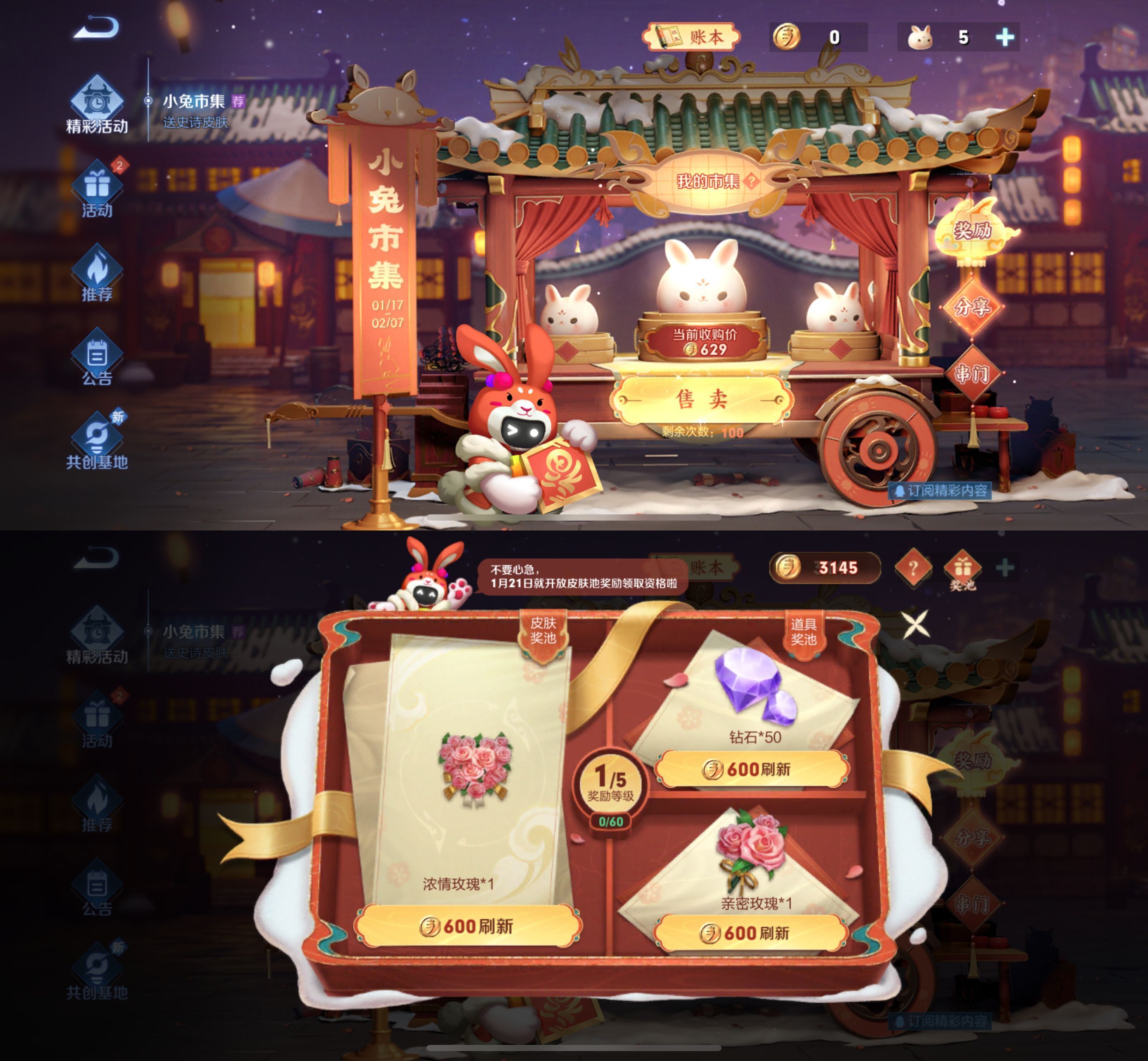 简单任务得小兔糕,卖小兔糕得小兔币 用来刷新奖励商店,