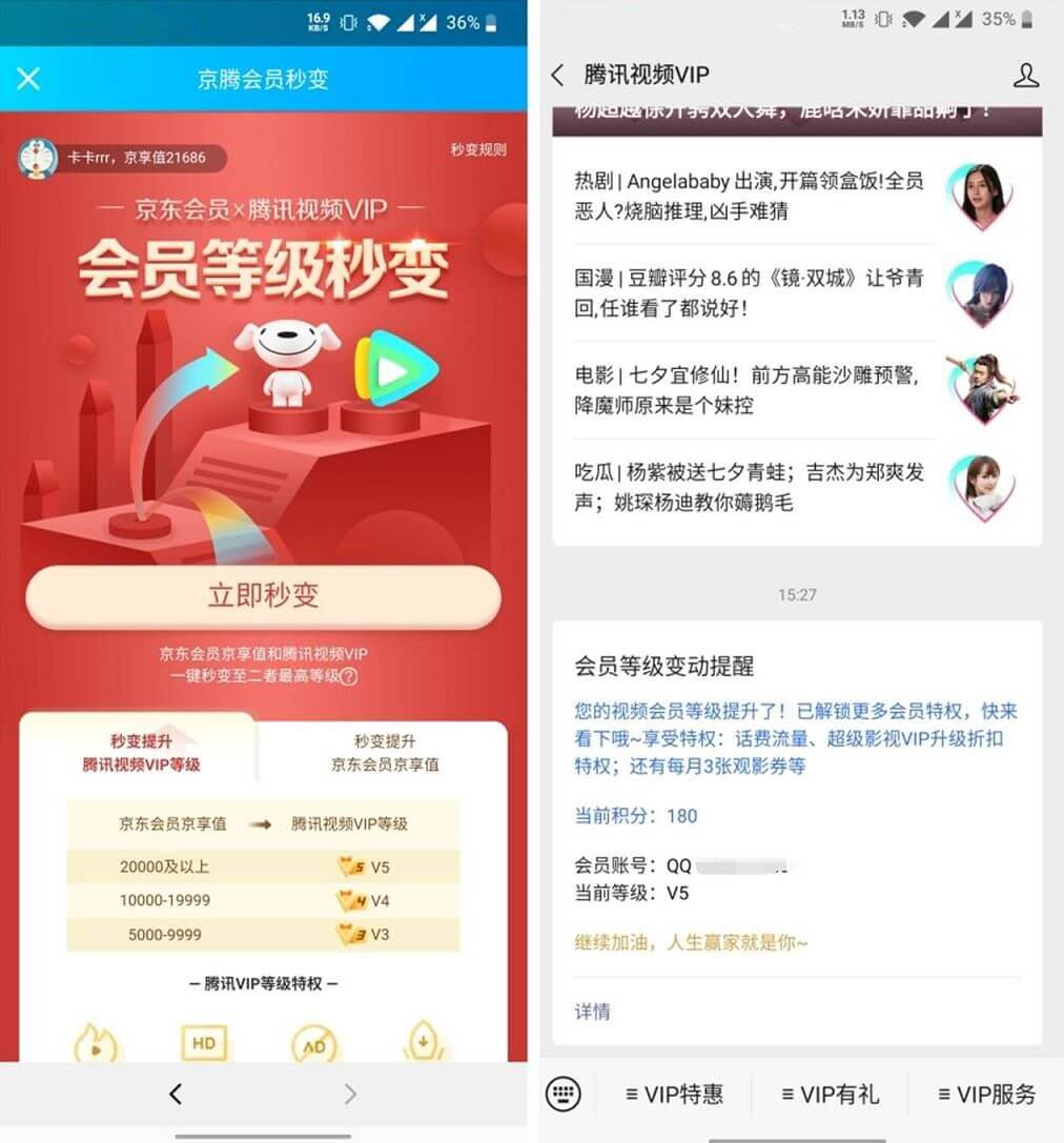 活动要求:本身是腾讯视频会员,且等级不超过5级
