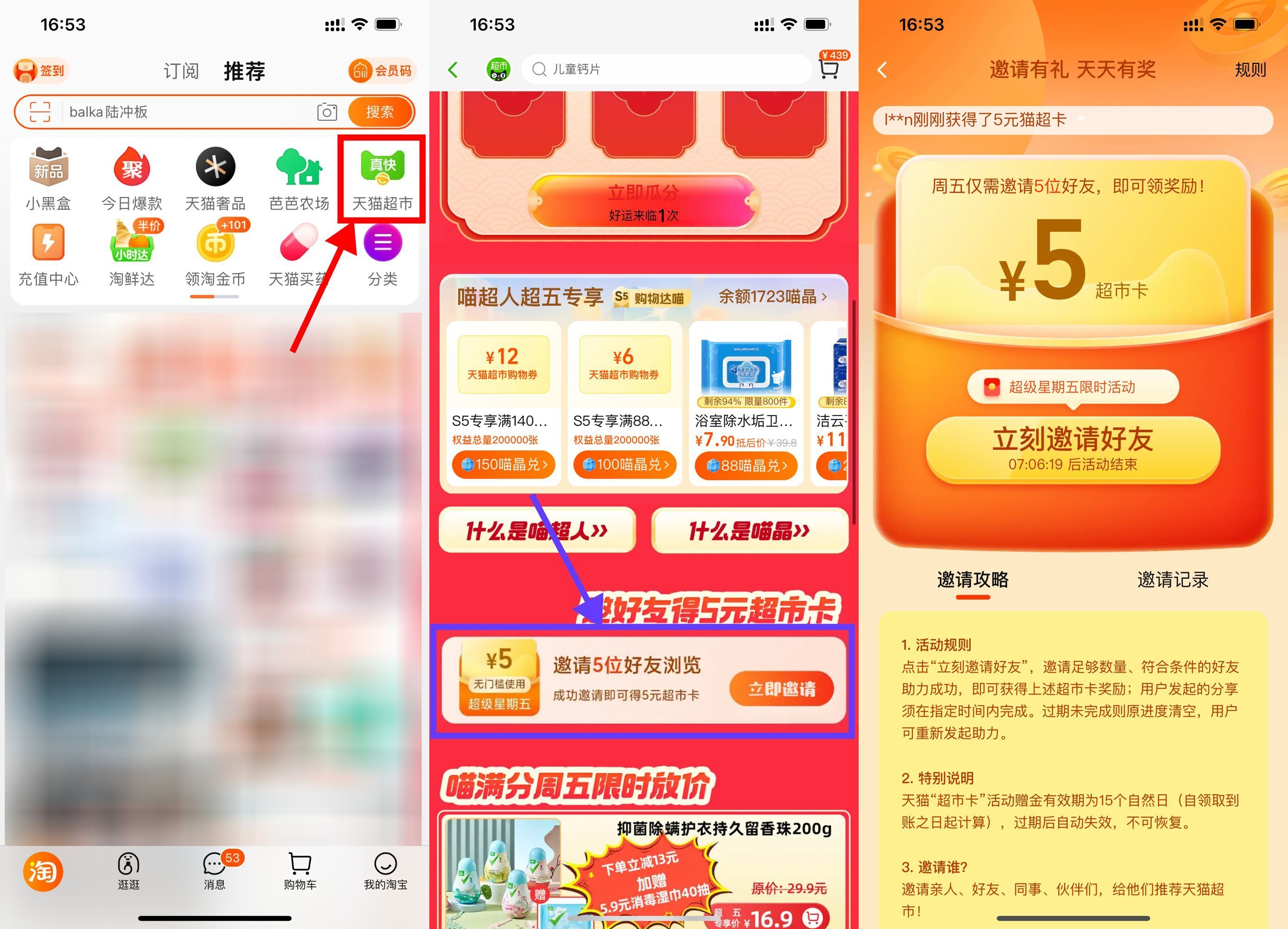 天猫超市邀好友领取5元猫超卡