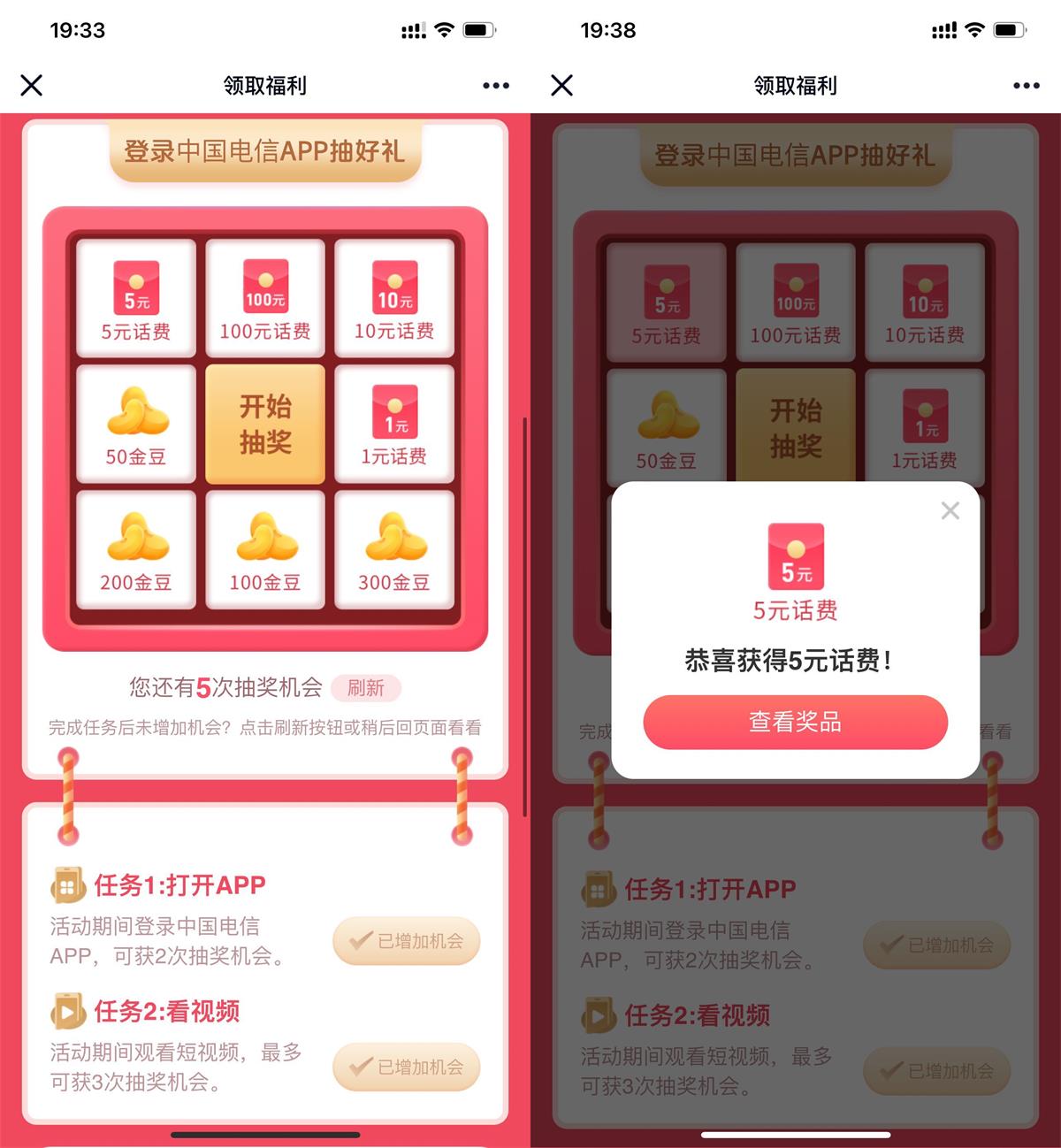 打开地址登陆->下拉根据提示领5次机会->抽1~100元话费,话费不秒到