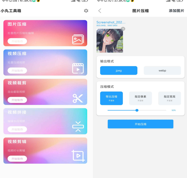 <p>一款很好用的手视频、图编辑工具,提供图压缩、视频压缩、视频剪裁、视频拼接、视频剪辑等功能。(登陆解锁VIP)</p><p> </p>
