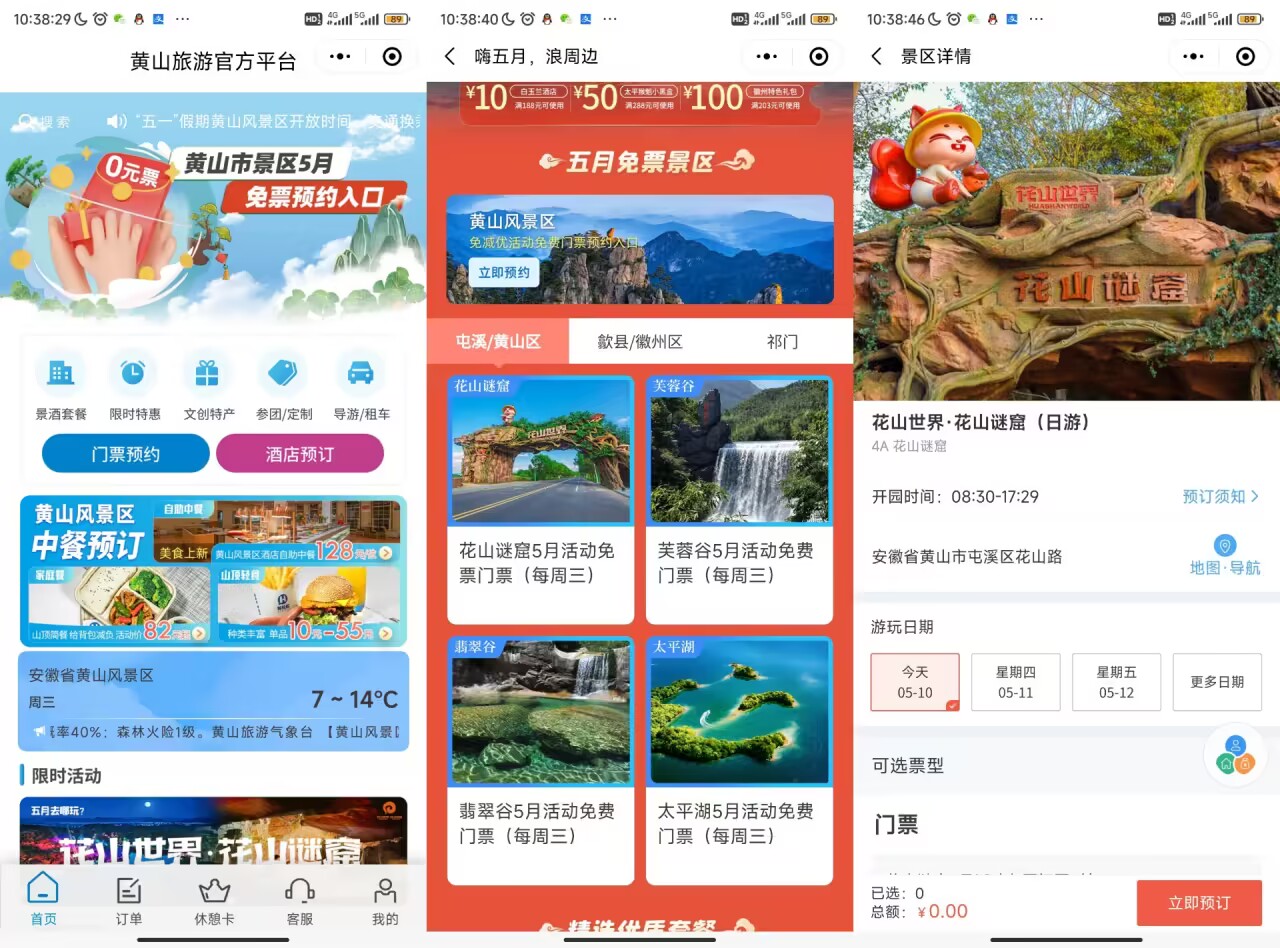 微信小程序搜索“黄山旅游官方平台”横幅进去预约即可