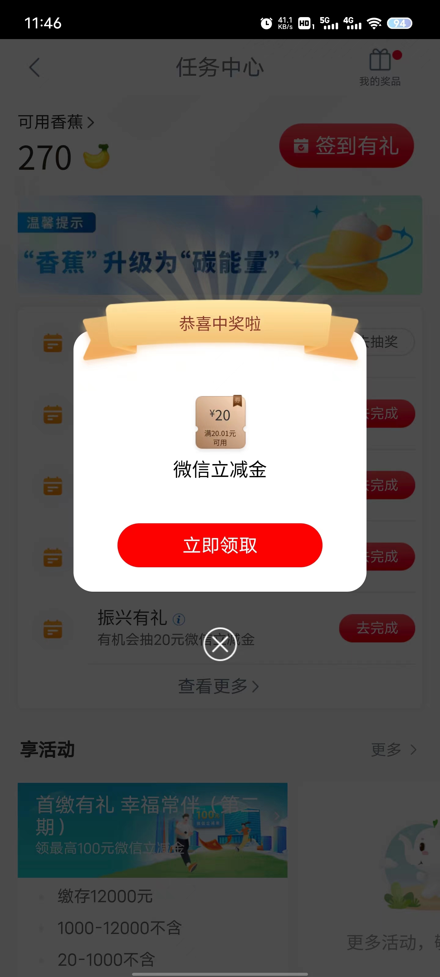 然后“我的”“任务中心”,进去做一些简单任务还可以抽立减金
