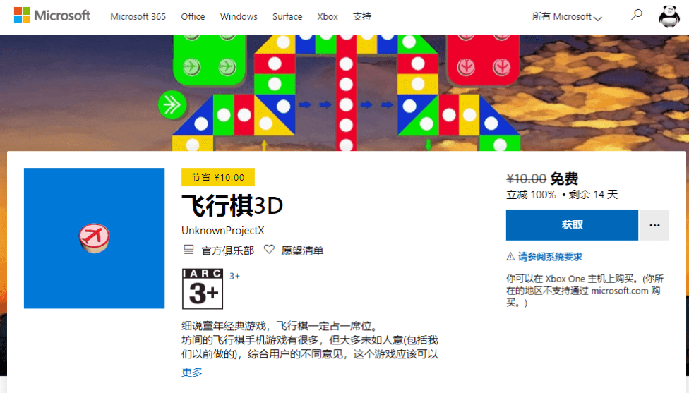 微软商店免费领取游戏 喜+8《飞行棋3D》