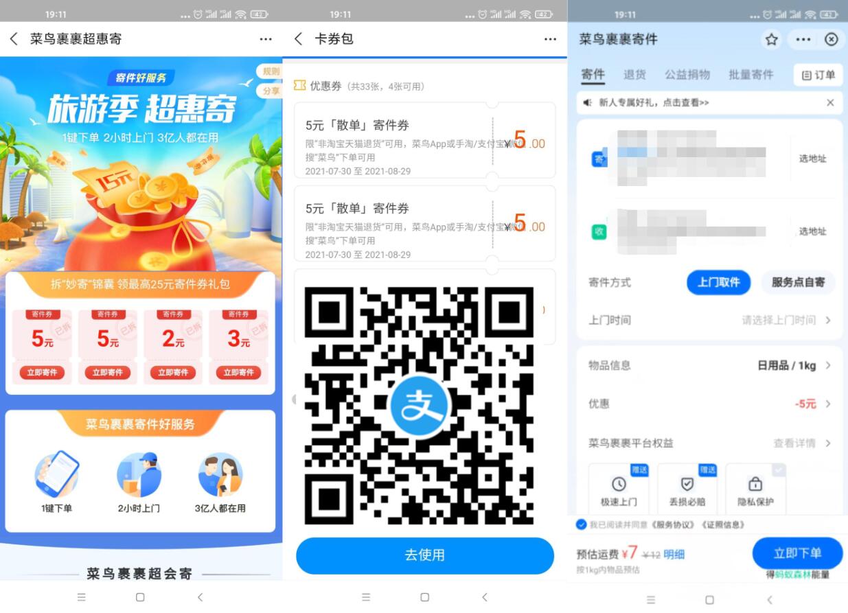 领取后有效期1个月->要寄菜鸟快递的可以领!